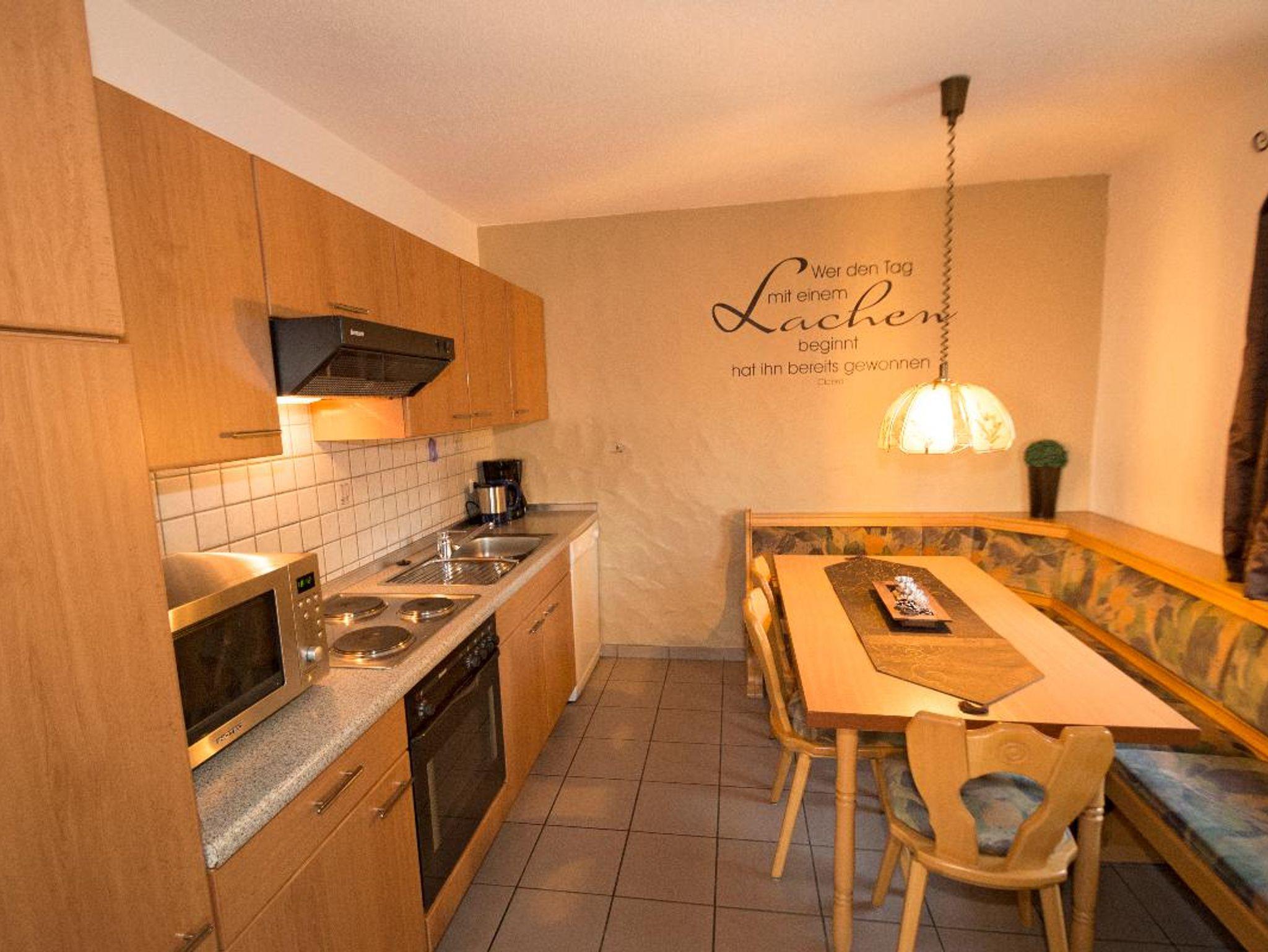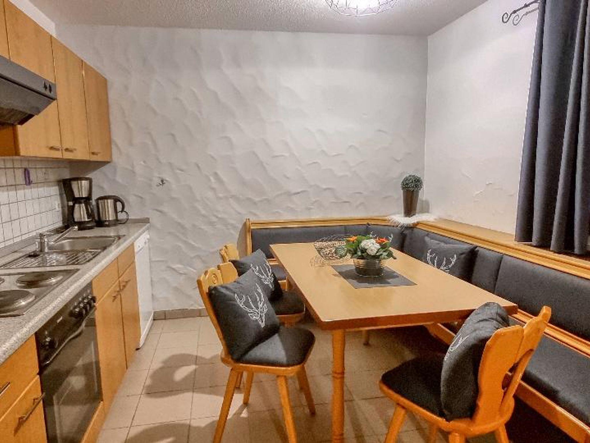 Die Küchenzeile ist voll ausgestattet und beinhaltet einen Elektroherd mit Dunstabzugshaube, einen Backofen, einen Kühlschrank mit Gefrierfach sowie Kaffeemaschine, Wasserkocher und Toaster. Geschirr, Besteck sowie Töpfe und Pfannen sind ebenfalls vorhanden, sodass Sie während Ihres Aufenthalts bequem selbst kochen können. Für gemeinsame Mahlzeiten steht eine gemütliche Essecke zur Verfügung.