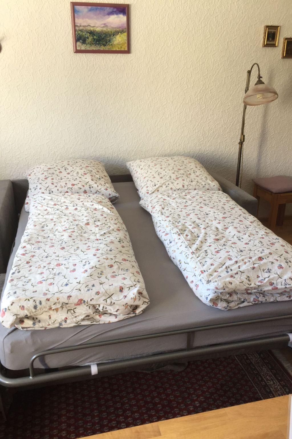 This cosy flat on the 2nd floor covers around 55 m². The amenities include an inviting living room with a practical double sofa bed as well as a darkened bedroom for restful nights. A flatscreen TV provides entertainment. The use of a washing machine and tumble dryer in the building is available to all guests for communal use, so that you always have fresh clothes even during longer stays.