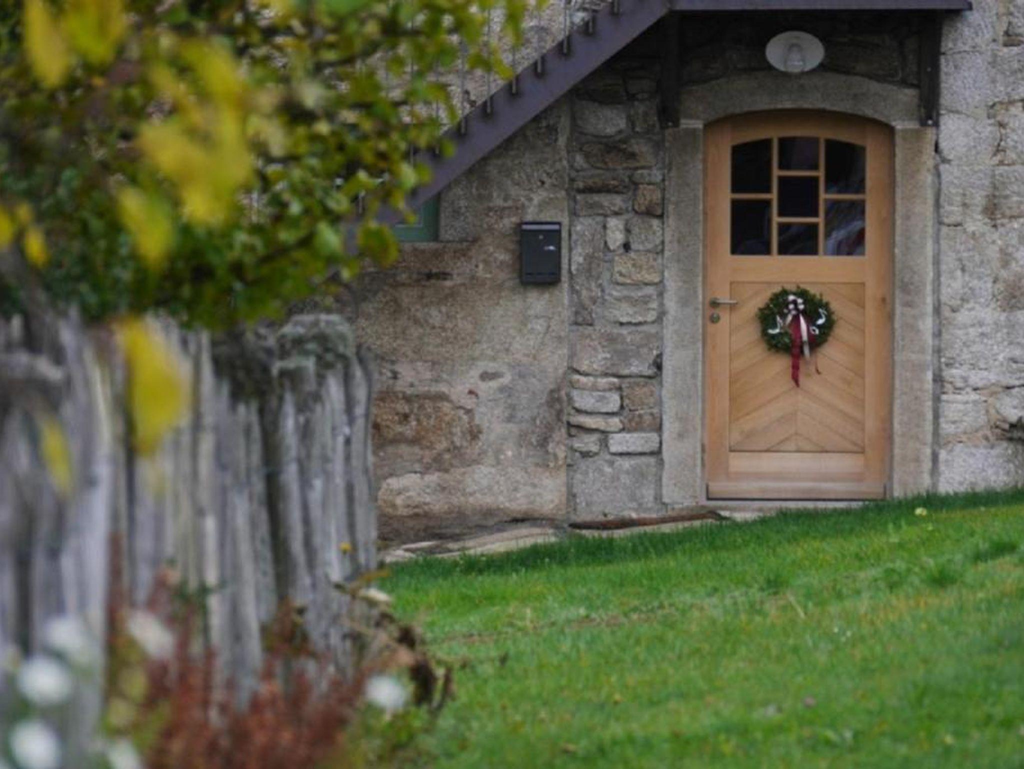 Im Außenbereich ist vor dem Haus ein typischer kleiner Bauerngarten angelegt, bestückt mit Blumen und Kräutern. Hinter dem Haus findet sich eine großzügig angelegte Terrasse, ein Lagerfeuer/ Grillplatz und eine große Spielwiese für Fußball, Volleyball und ähnliches.