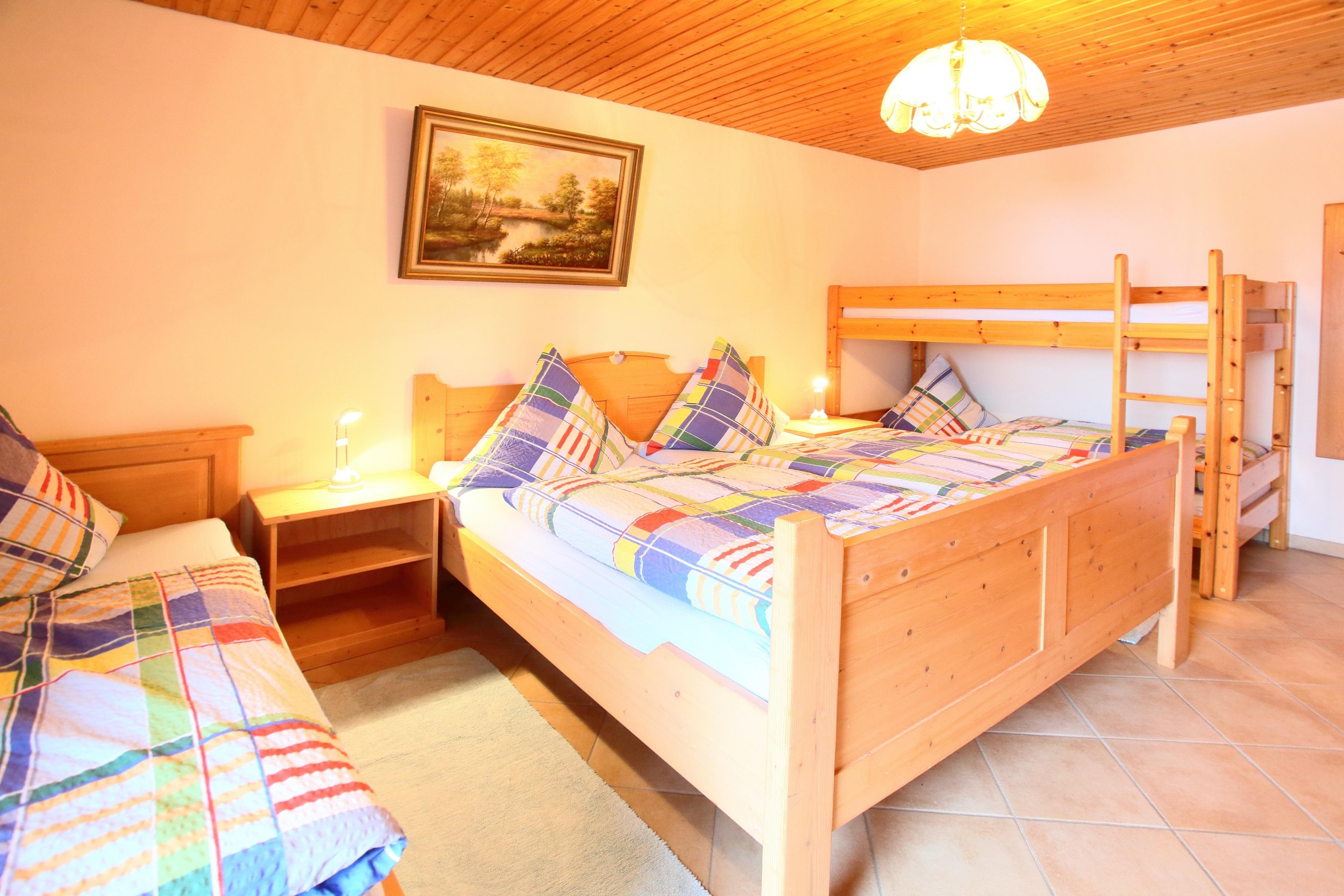 1 Zimmer mit 2 Einzelbetten und Etagenbett 90 x 200, behindertengerecht.