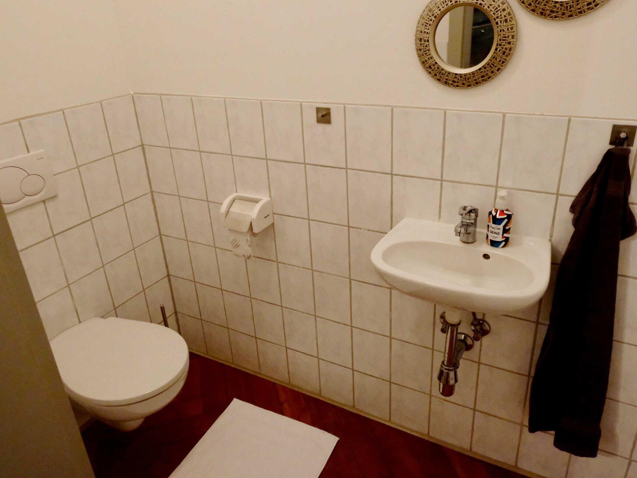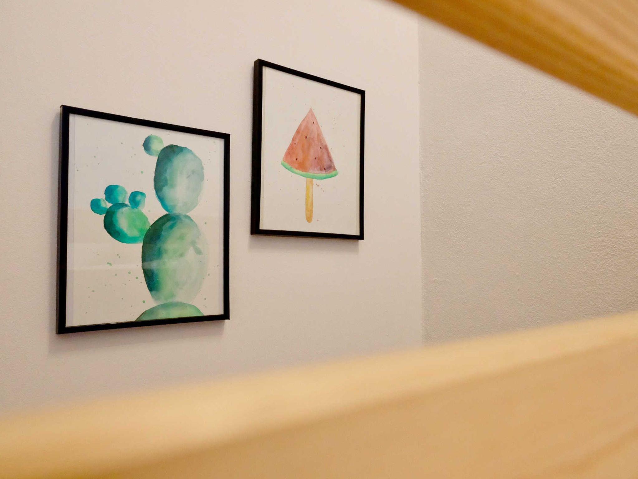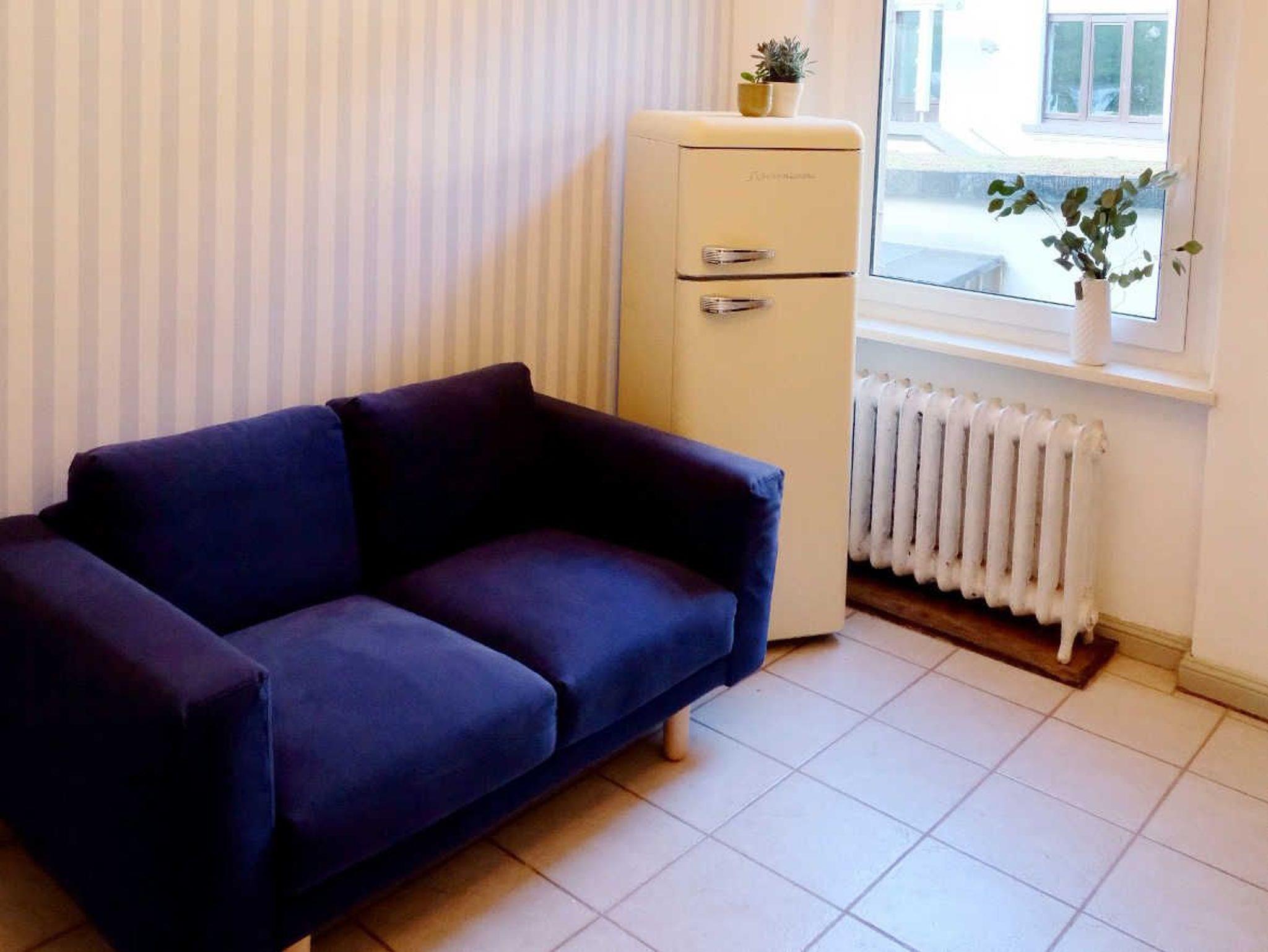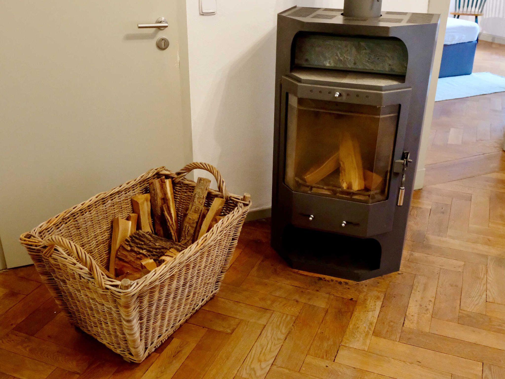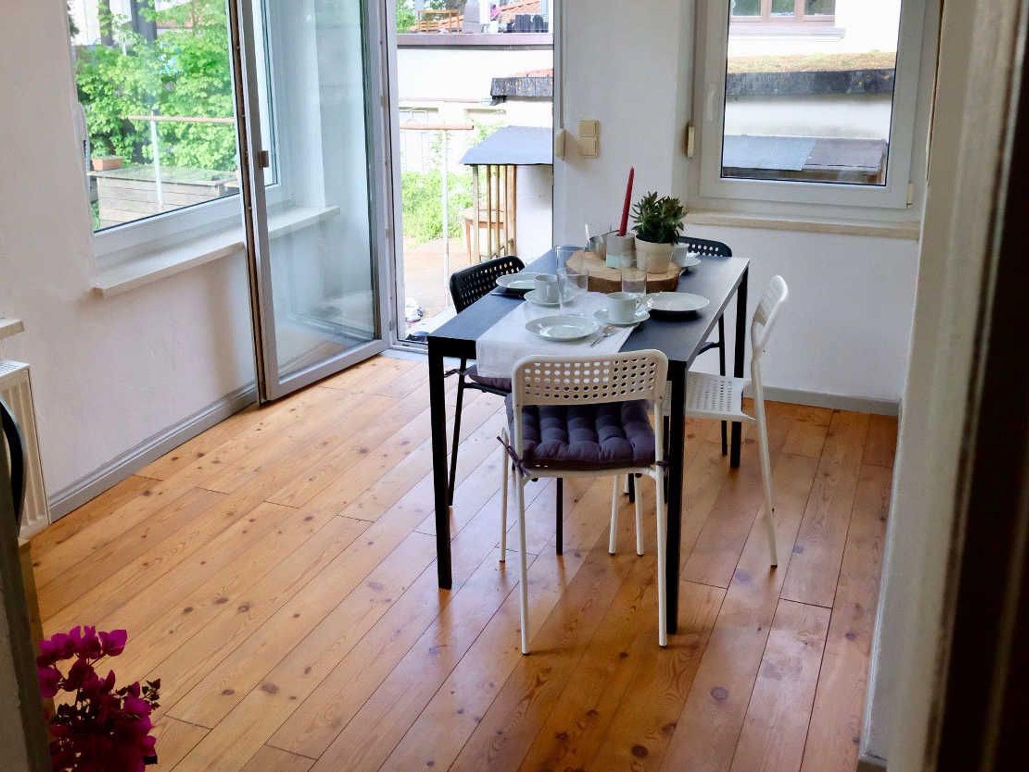 Die komplette knapp 100 Quadratmeter große Wohnung ist mit alten, aufbereiteten Dielen ausgelegt. Moderne Kunst schmückt die Wände. Die Ferienwohnung wurde 2020 komplett saniert und eingerichtet.
