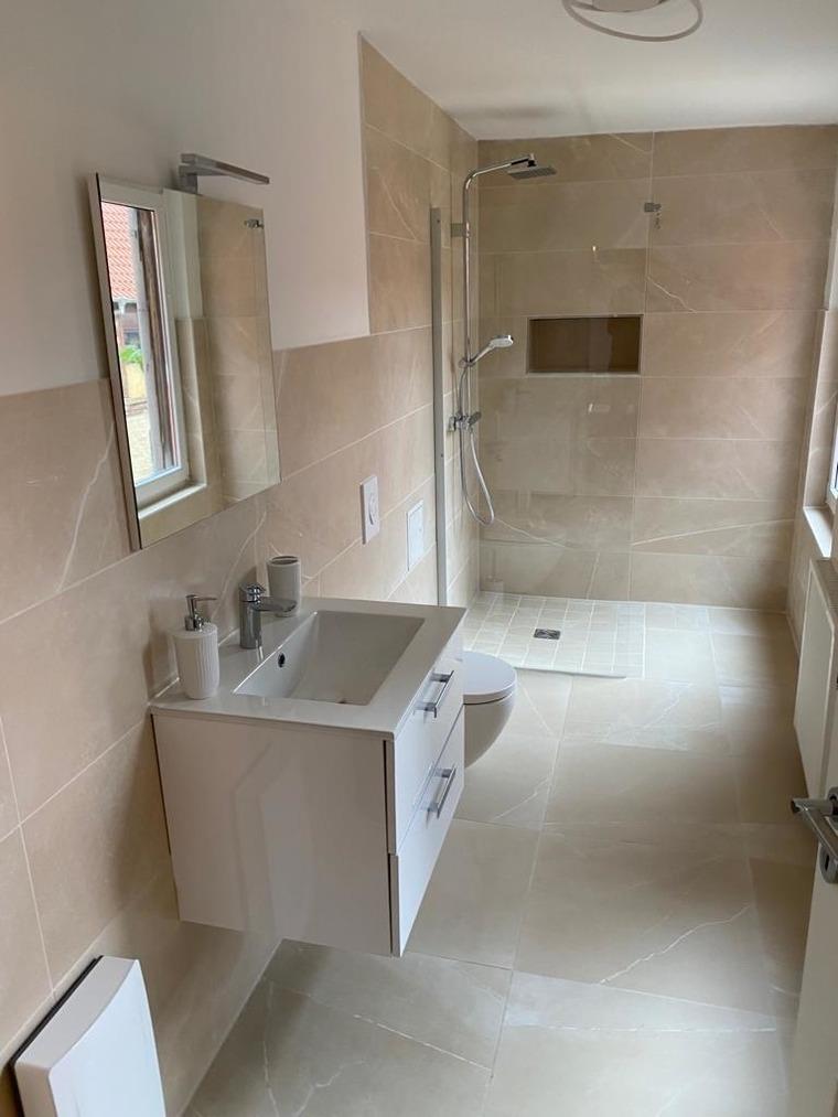Bad: Dusche, Waschtisch, WC