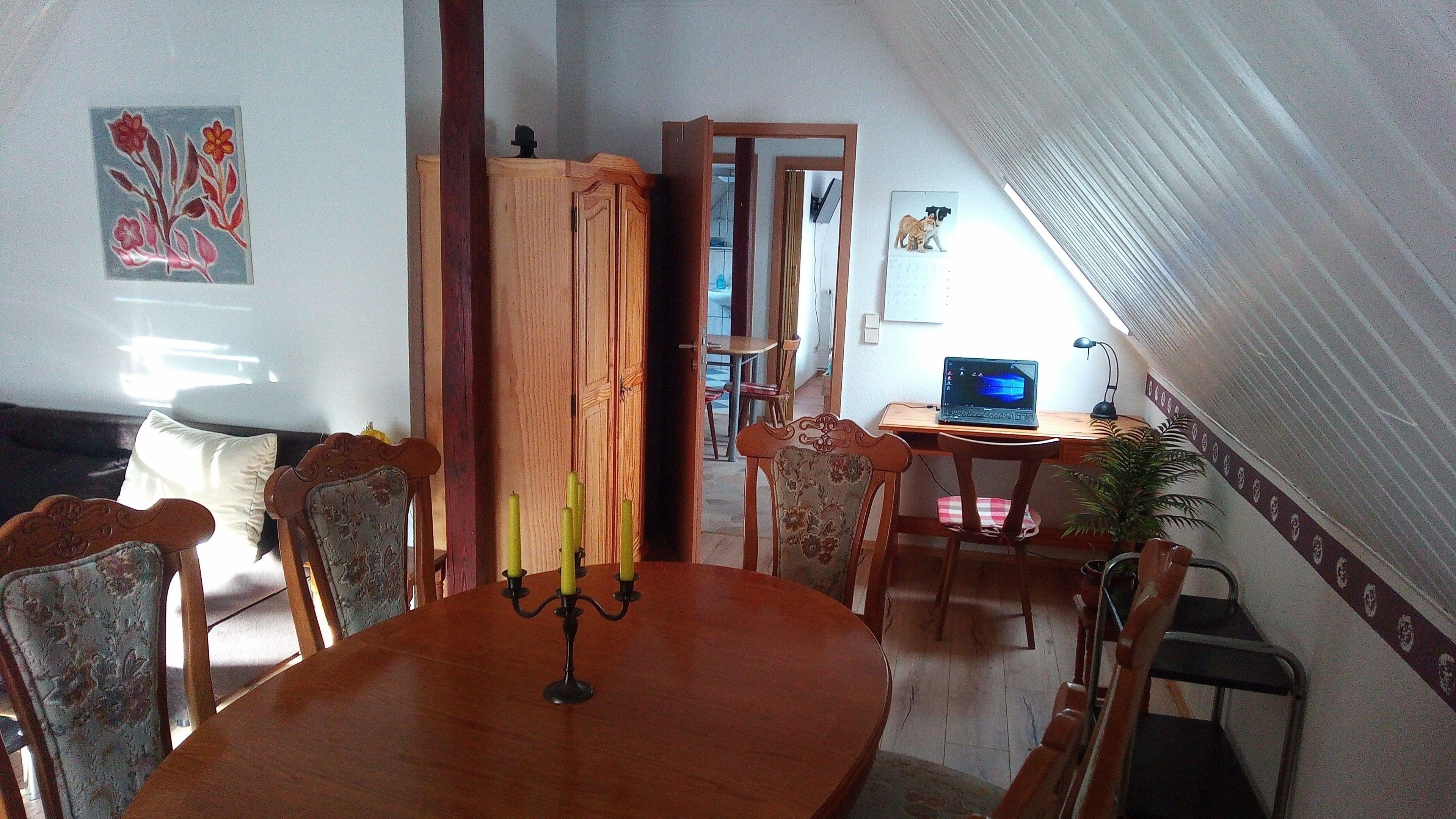 Komplett ausgestattete Ferien- und Gästewohnung in Halberstadt, Kreisstadt des Landkreises Harz, im Dachgeschoss einer alten, zentral und ruhig gelegenen Stadthaus.