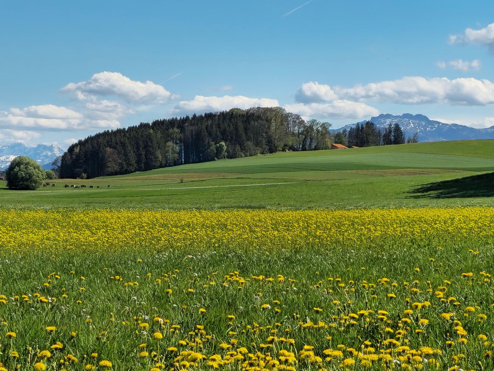 Unser Hof liegt naturnah, ländlich, urig, freundlich mit Ausblick ins Grüne, auf die Berge und die alte Obstwiese, welche unsere Hühner (mit Hahn) bewohnen.