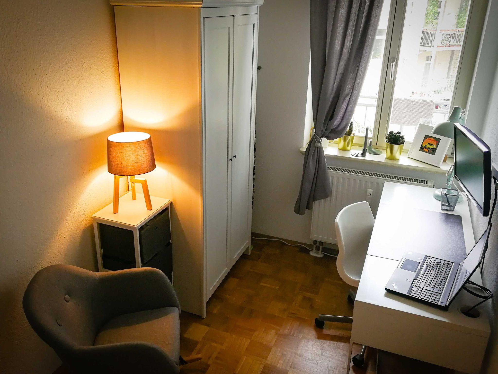 Zentral und dennoch sehr ruhig gelegenes Apartment, welches mit unschlagbarer Lage am Uniring gesegnet ist. Das Apartment besitzt einen Balkon in Hinterhoflage sowie schöne und minimalistisch eingerichtete Zimmer. Hierunter fallen eine vollausgestattete Küche (Wasserkocher, Kaffeemaschine etc.), ein Tageslichtbad sowie ein stilvolles, helles Wohnzimmer inkl. großer Schlafcouch. Auch verfügt das Apartment über ein separates Schlafzimmer und voll ausgestatteten Arbeitsplatz (siehe Bilder). Insgesamt ist das Objekt ein sanierter Altbau in ruhiger Lage, mit schönen Zimmern und guter Mieterkultur. Die Unterkunft ist in der ersten Etage gelegen.