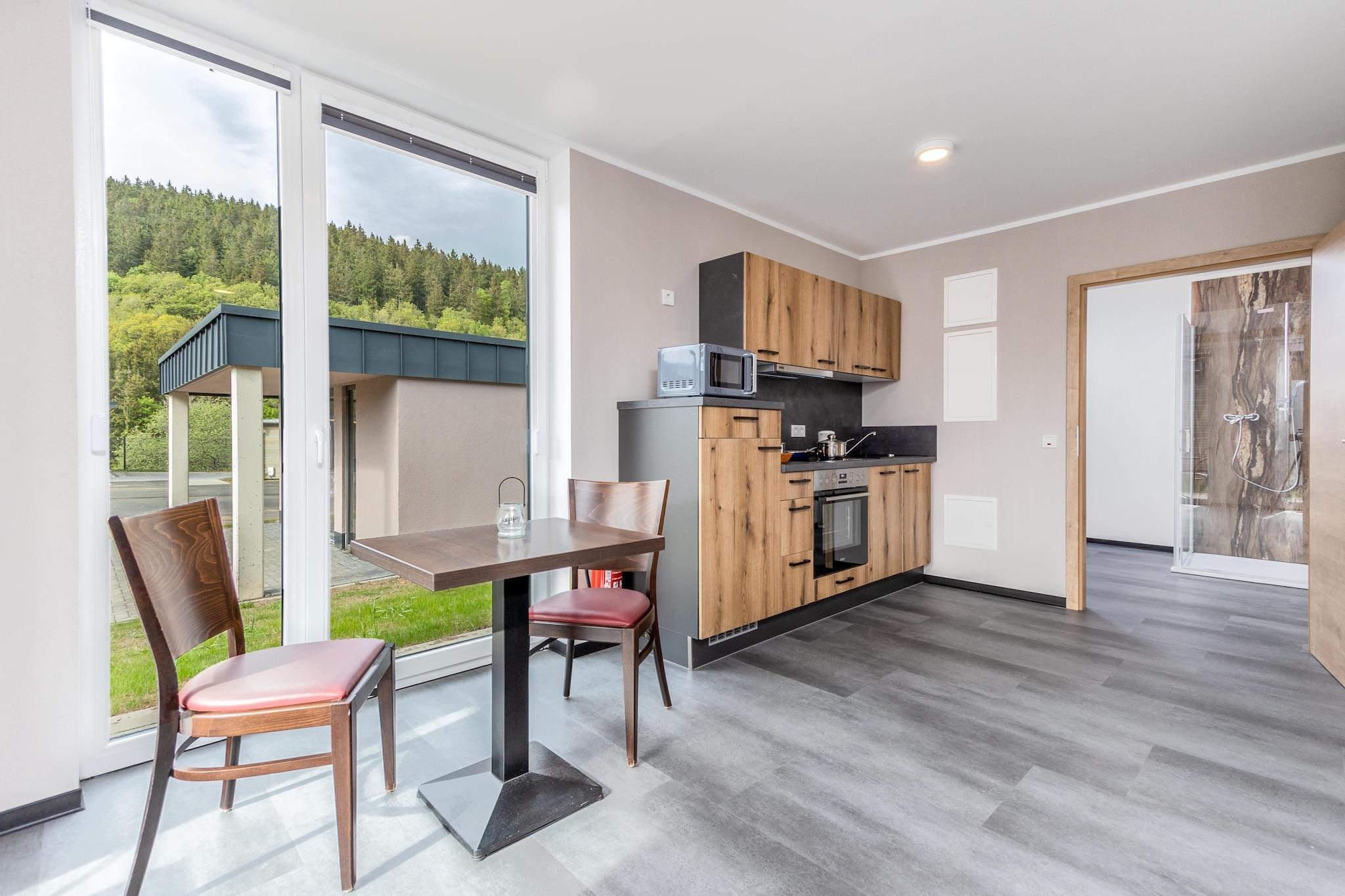 Denne charmerende bungalow nær Kronenburger See tilbyder et hyggeligt tilflugtssted for familier eller venner, komplet med en møbleret terrasse, moderne køkken med opvaskemaskine og en grill til at slappe af efter naturskønne dage. For ekstra komfort kan gæsterne vælge at bruge en sauna, vaskemaskine eller elektriske cykler til at udforske de frodige omgivelser. Børnevenlige funktioner og sikker parkering sørger for et praktisk og afslappende ophold. Beliggende i den fredelige landsby Hallschlag, er huset beliggende blandt bølgende bakker, skove og dale i hjertet af Eifel. Naturelskere kan vandre den berømte Eifelsteig, cykle stille stier, fiske nærliggende søer eller ride på hesteryg. Et besøg på det middelalderlige Kyllburg Slot tilføjer kulturelt flair til denne rolige flugt. Uanset om de slapper af med en bog på terrassen eller begiver sig ud i skovstier, vil gæsterne nyde en blanding af komfort, natur og landlig charme. Denne bungalow er den perfekte base til at koble fra og genoplade i et fredfyldt hjørne af det vestlige Tyskland.
