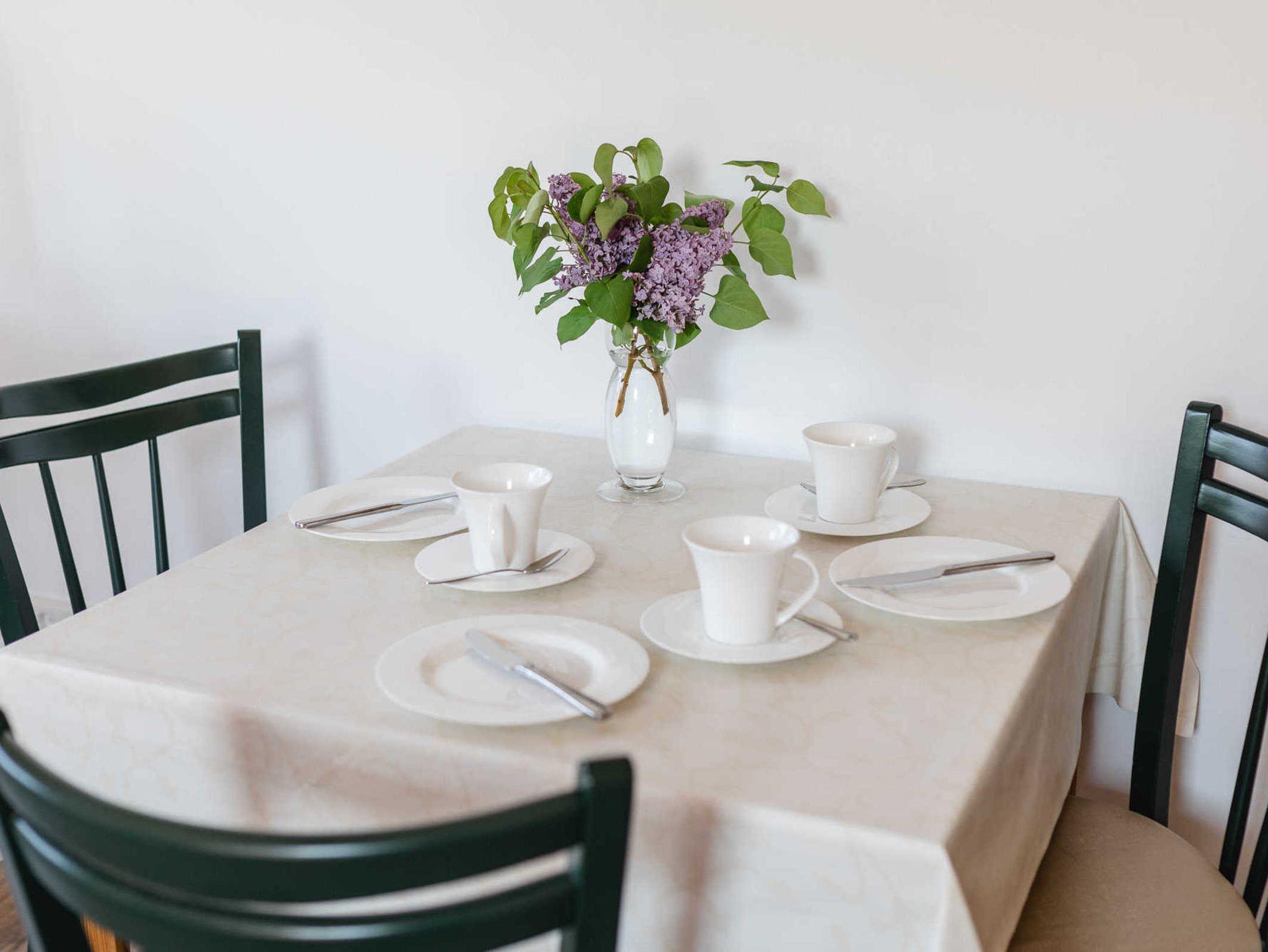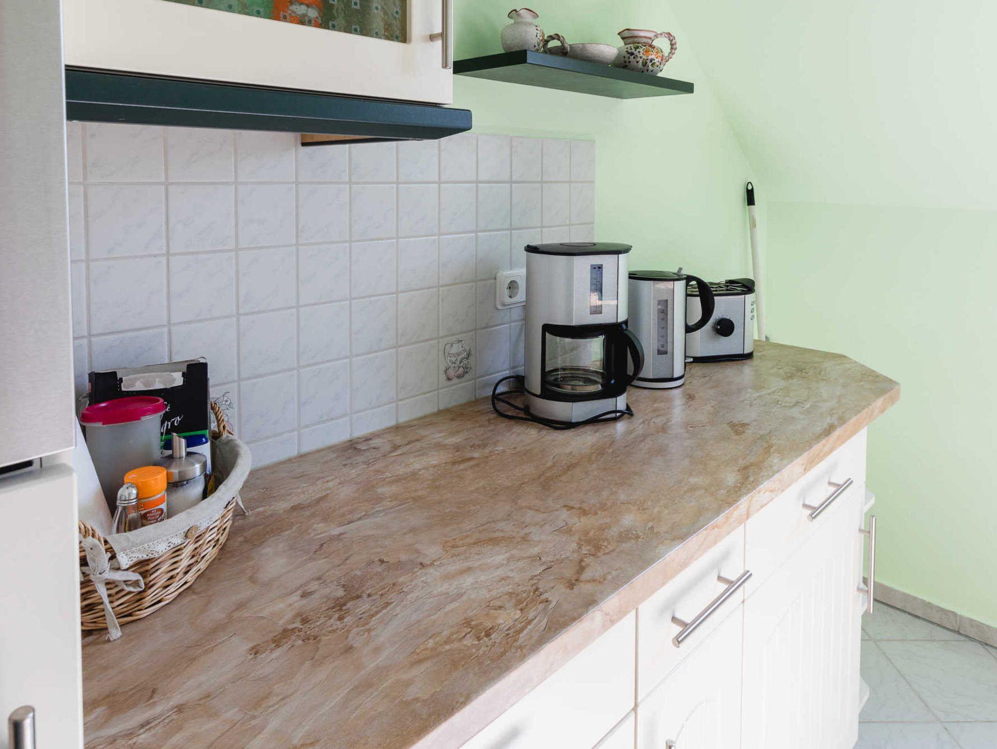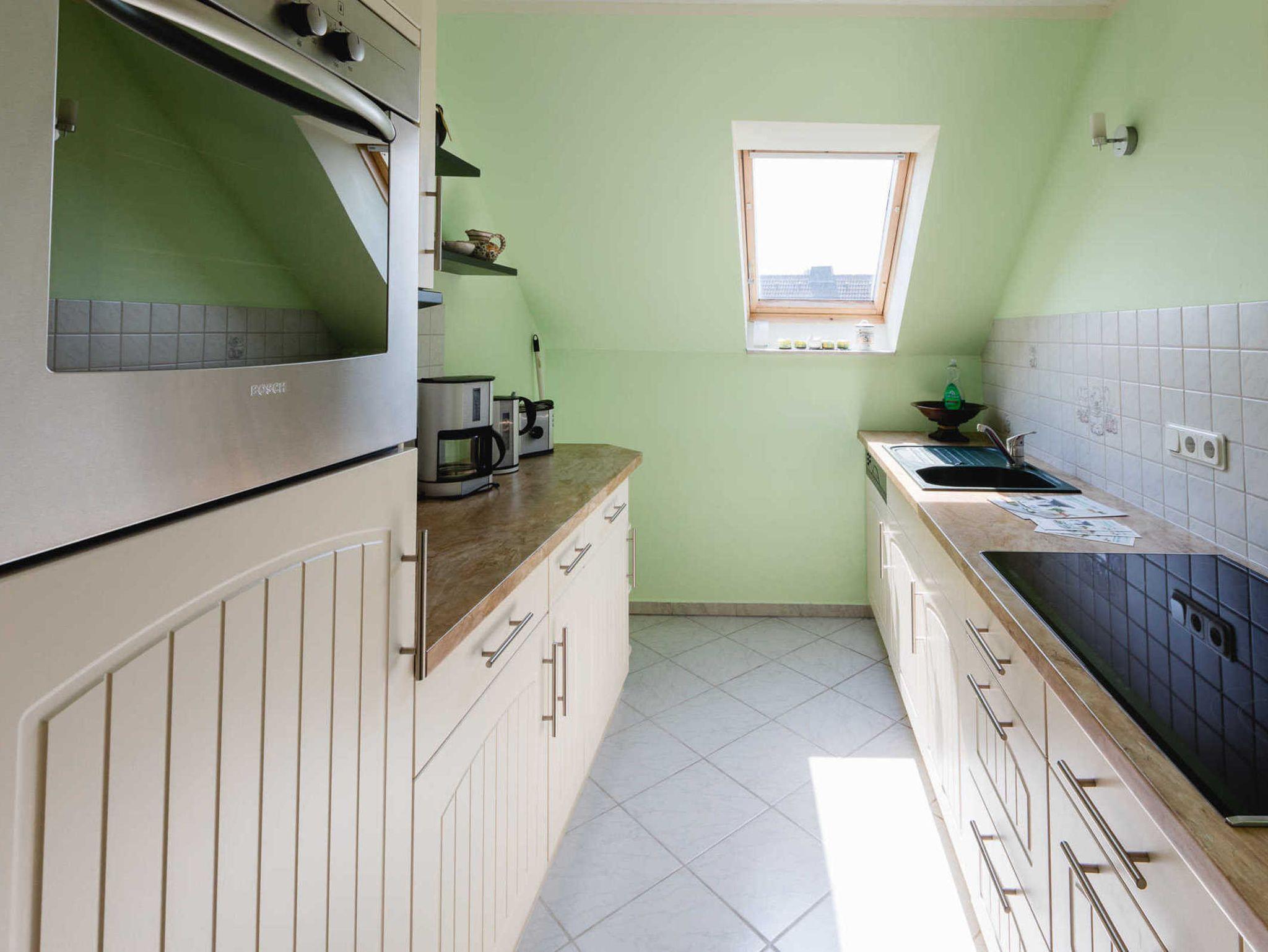 Unsere Wohnung verfügt über eine voll ausgestattete, separate Küche mit einem Backofen, Cerankochfeld, Kühlschrank, und einem Geschirrspüler. Sie finden in der Küche außerdem eine Kaffeemaschine (Filter), Wasserkocher und einen Toaster. Natürlich finden Sie in unserer Küche auch das passende Geschirr und alle weiteren Dinge, die Sie für einen angenehmen Aufenthalt brauchen. Eine dritte Person kann ganz bequem auf einem Klappbett schlafen. Für Kleinkinder stellen wir gern ein Reisebett kostenlos zur Verfügung.