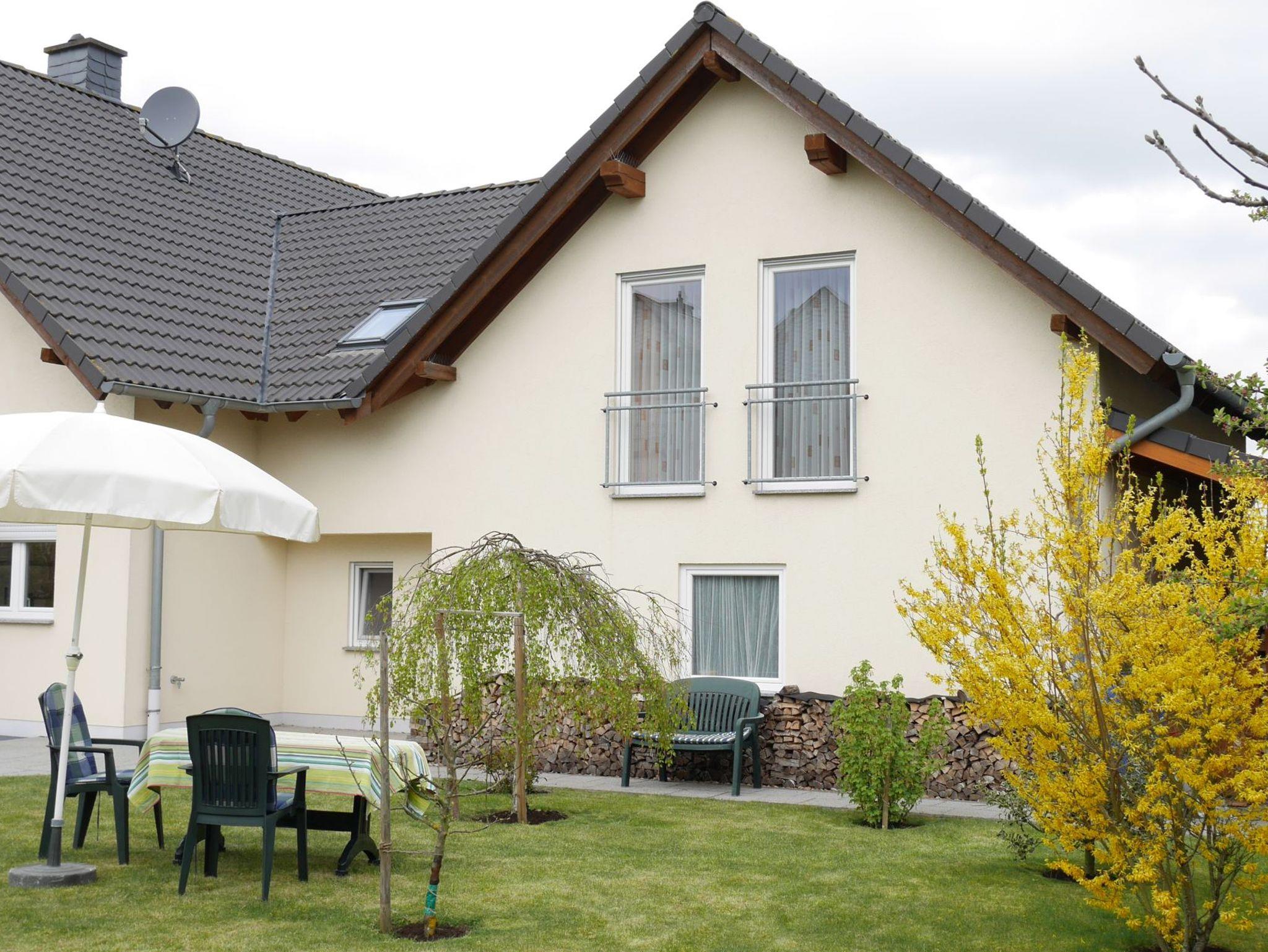 Helle, ca. 55 Quadratmeter große Ferienwohnung mit separatem Eingang befindet sich in der ersten Etage eines neuen Einfamilienhauses. Sie bietet eine schöne Aussicht. Ein großer Garten steht Ihnen genauso wie ein Abstellplatz für Fahrräder zur Verfügung. Bei Bedarf stellen wir ihnen zusätzliche Decken und Kopfkissen sowie einen Reinigungsservice während ihres Aufenthaltes zur Verfügung.