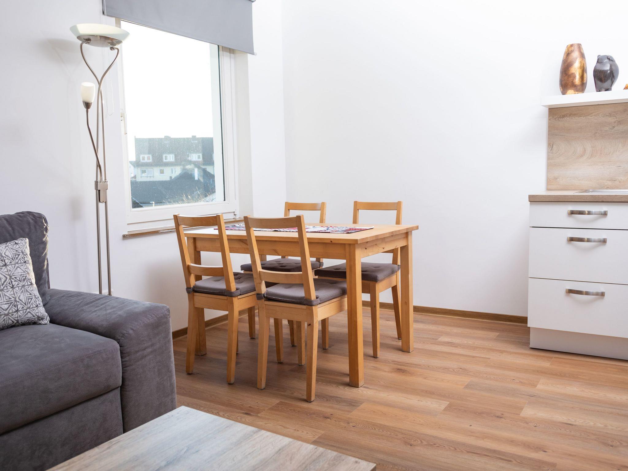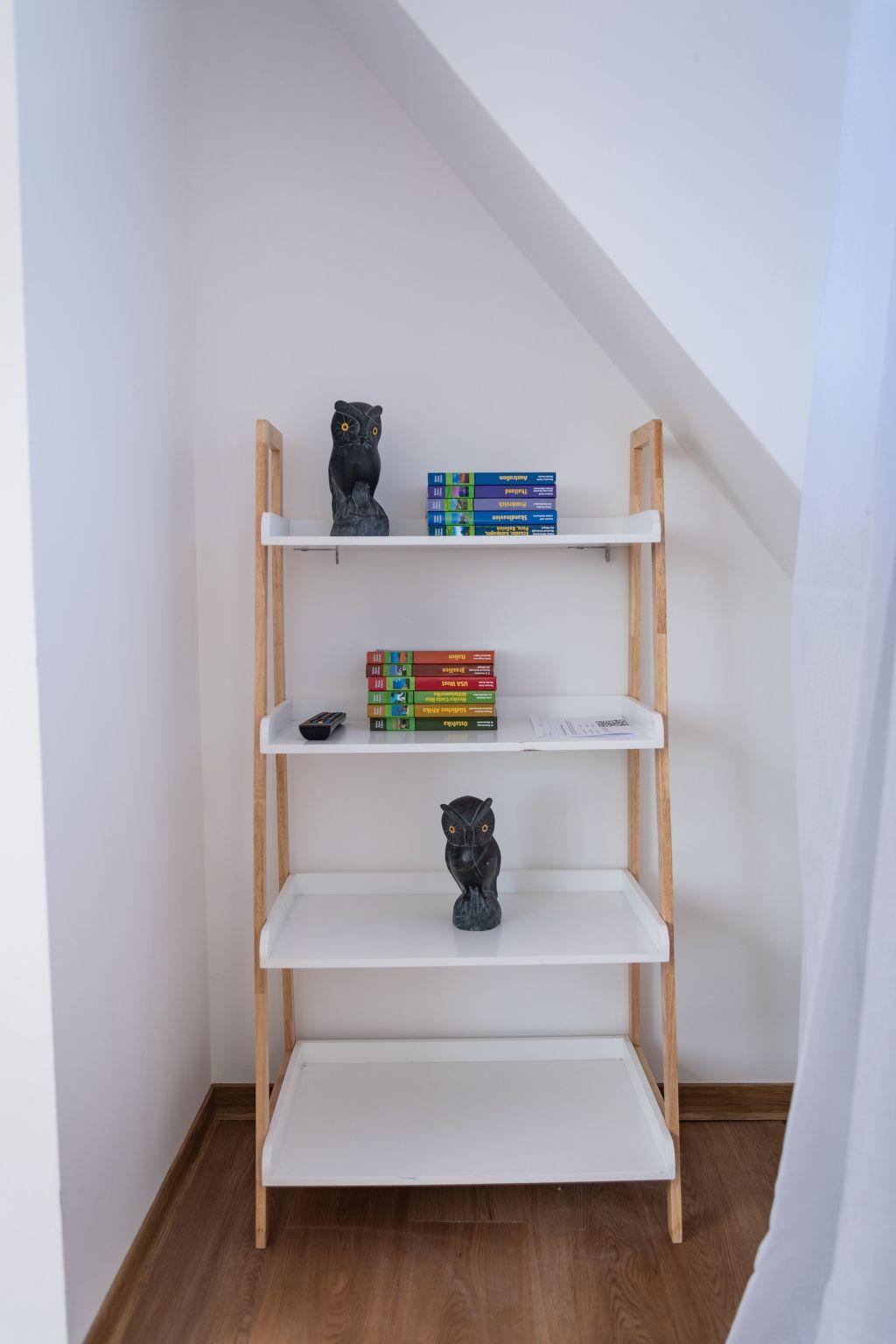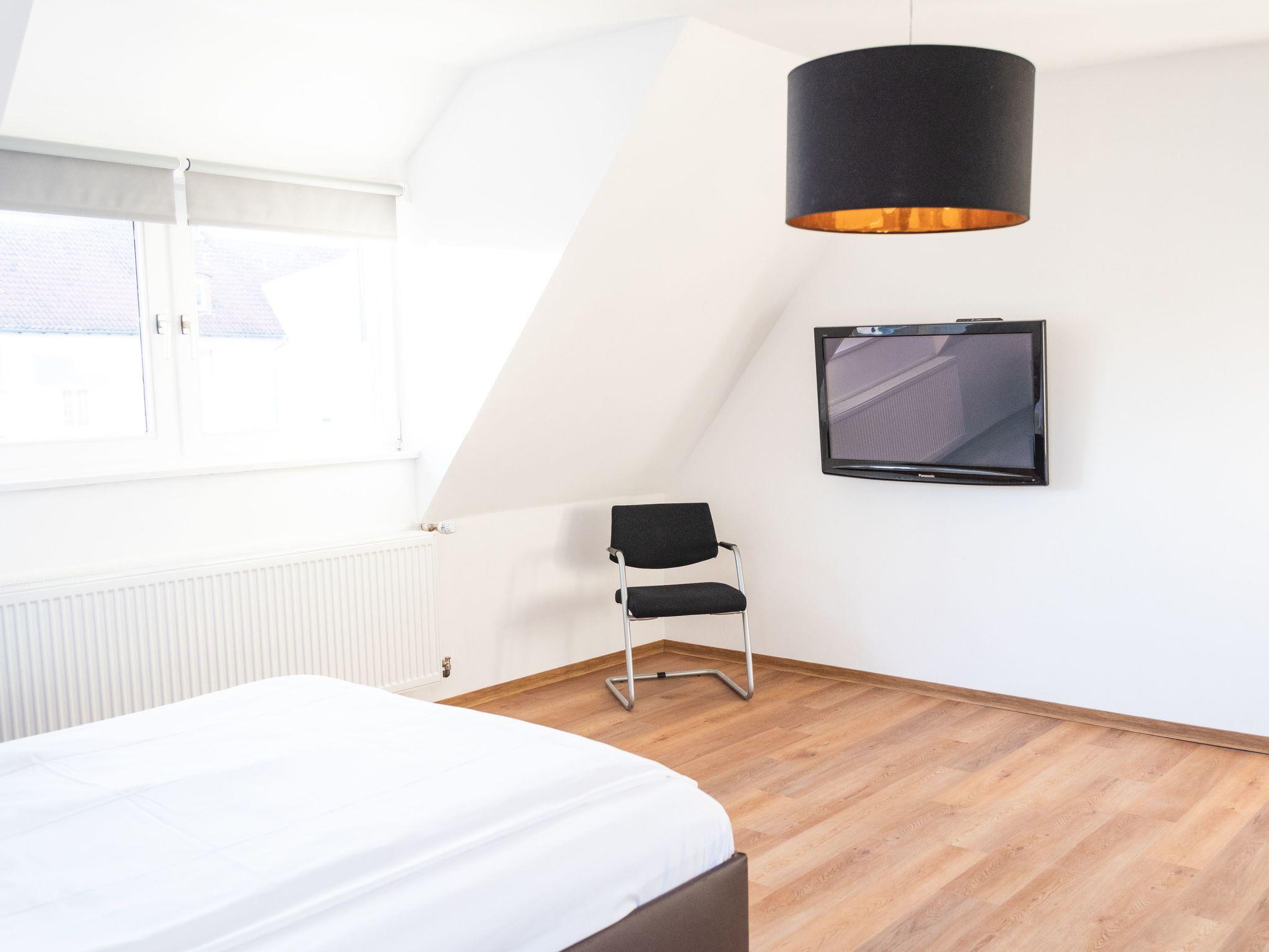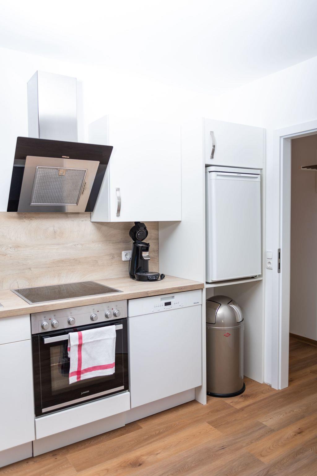 The holiday flat is equipped with a double bed, 160 x 200 and a large bathroom. Furthermore, you have a fully equipped kitchenette, so the flat is also intended for longer stays. You will also find a small desk for working in the flat. It is ideal for courses at the academy or training courses in Hamelin and the surrounding area.