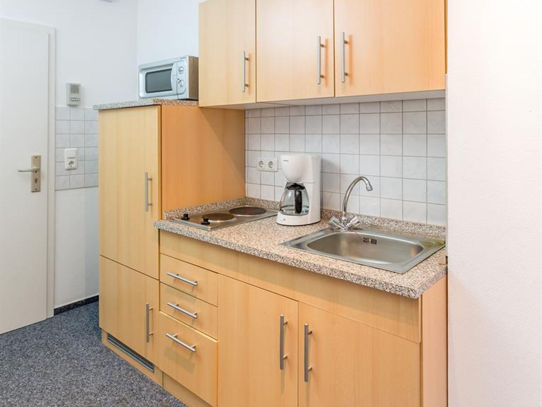 Das Apartment M ist ausgelegt für maximal 4 Personen. Es warten Sie 51 m² mit Wohlfühlfaktor. Sie können sich über eine Küchenzeile im Flur mit einer Mikrowelle, einer Kaffeemaschine, einem Herd und einen Kühlschrank freuen. Im Wohnraum befindet sich ein Schreibtisch, sowie eine Sitzecke zum Fernsehgucken und zum Entspannen. Die Sitzecke kann nach Bedarf auch als Schlafsofa umfunktoniert werden. Das Badezimmer ist mit Dusche, WC, Föhn und einem großen Spiegel ausgestattet.Außerdem bietet das Badezimmer ausreichend Möglichkeiten zum Verstauen.