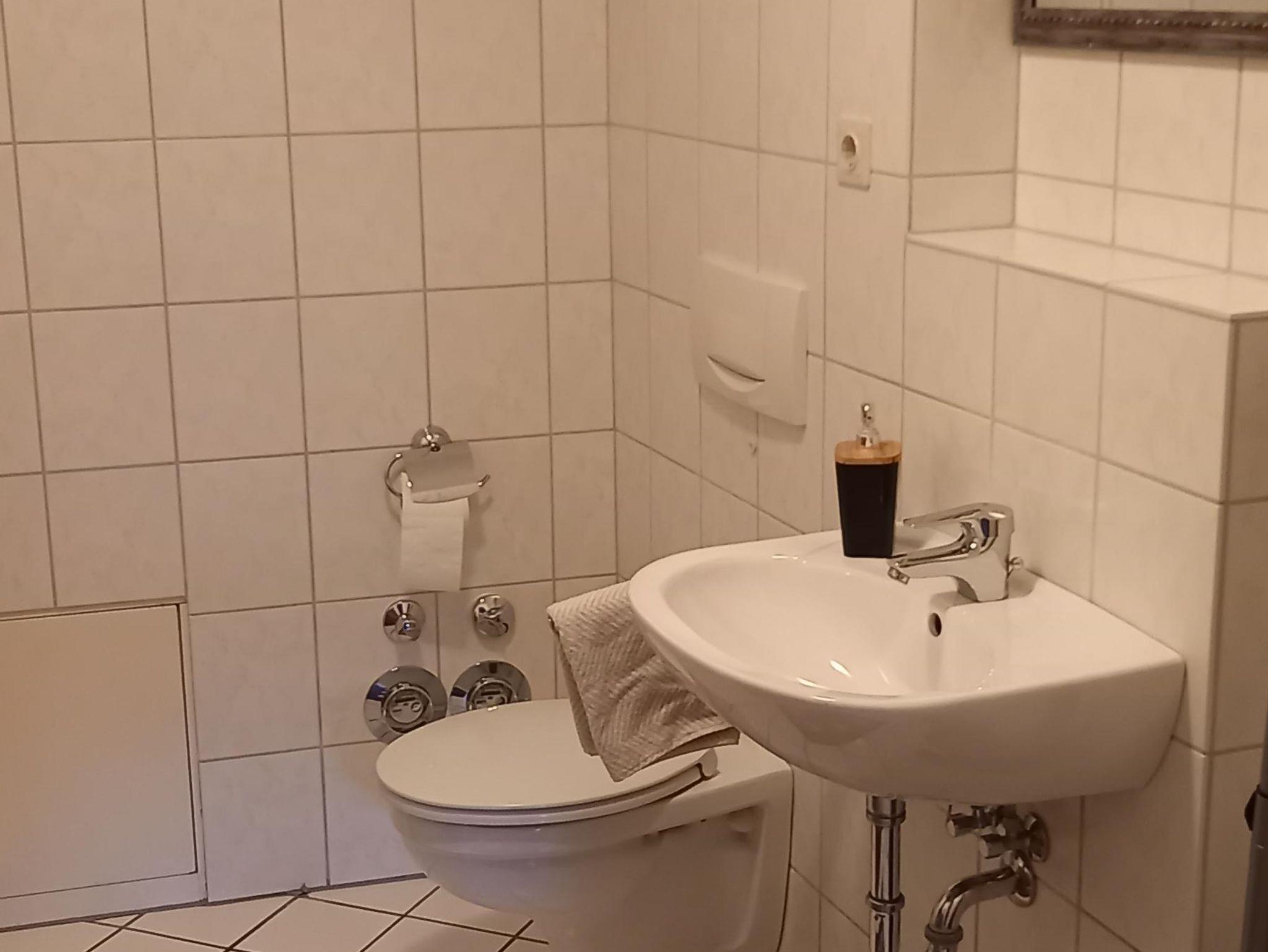 Optional stehen Ihnen eine Waschmaschine, ein Trockner sowie weitere Trockenmöglichkeiten im Innenhof bzw. im Waschraum (EG) zur Verfügung. Sie können natürlich auch ganz bequem die Waschmaschine im Bad nutzen.