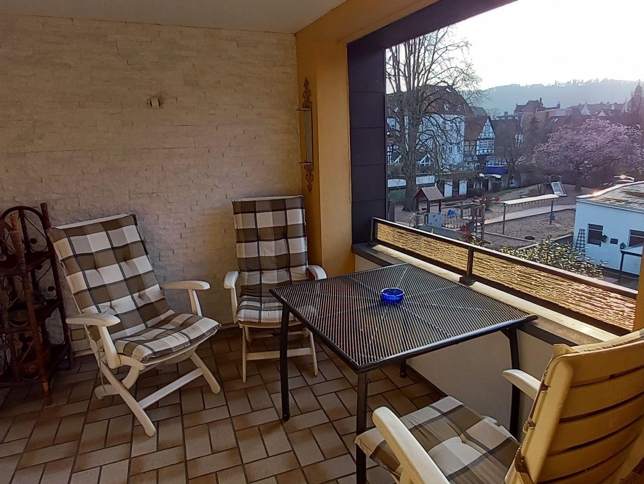Vom großen, sonnigen Balkon haben Sie einen grandiosen Blick auf die Stadt und das schöne Umland.