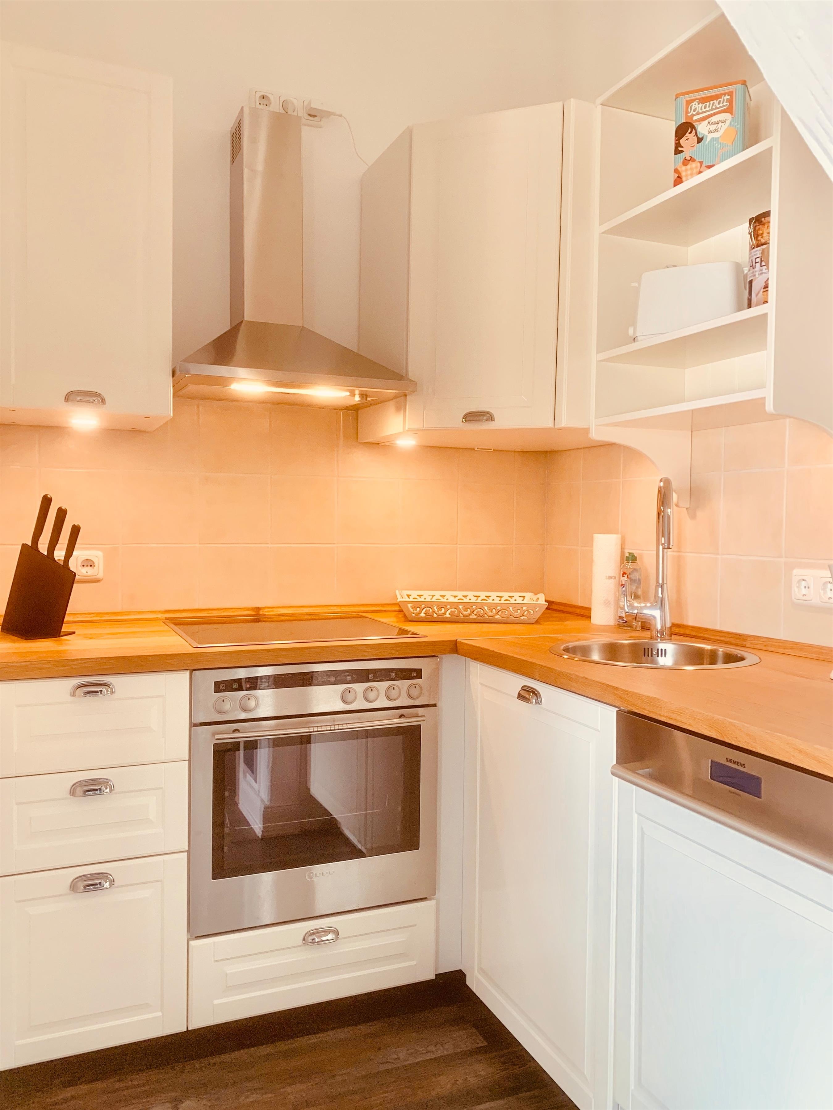 Alle vier Suiten verfügen über eine komplett ausgestattete Einbauküche und kostenlosen WLAN-Zugang.