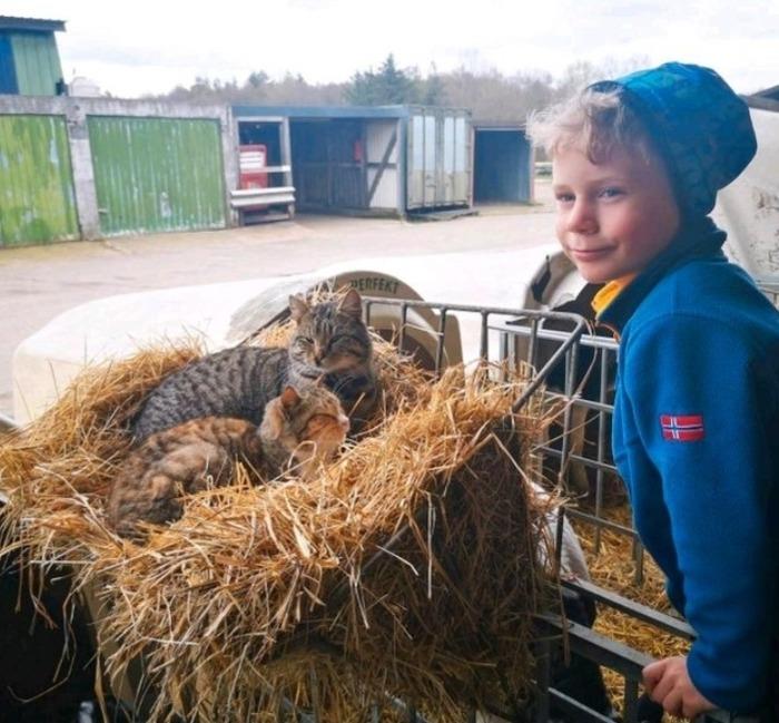 Kaninchen, Katzen und zwei Hofhunden.