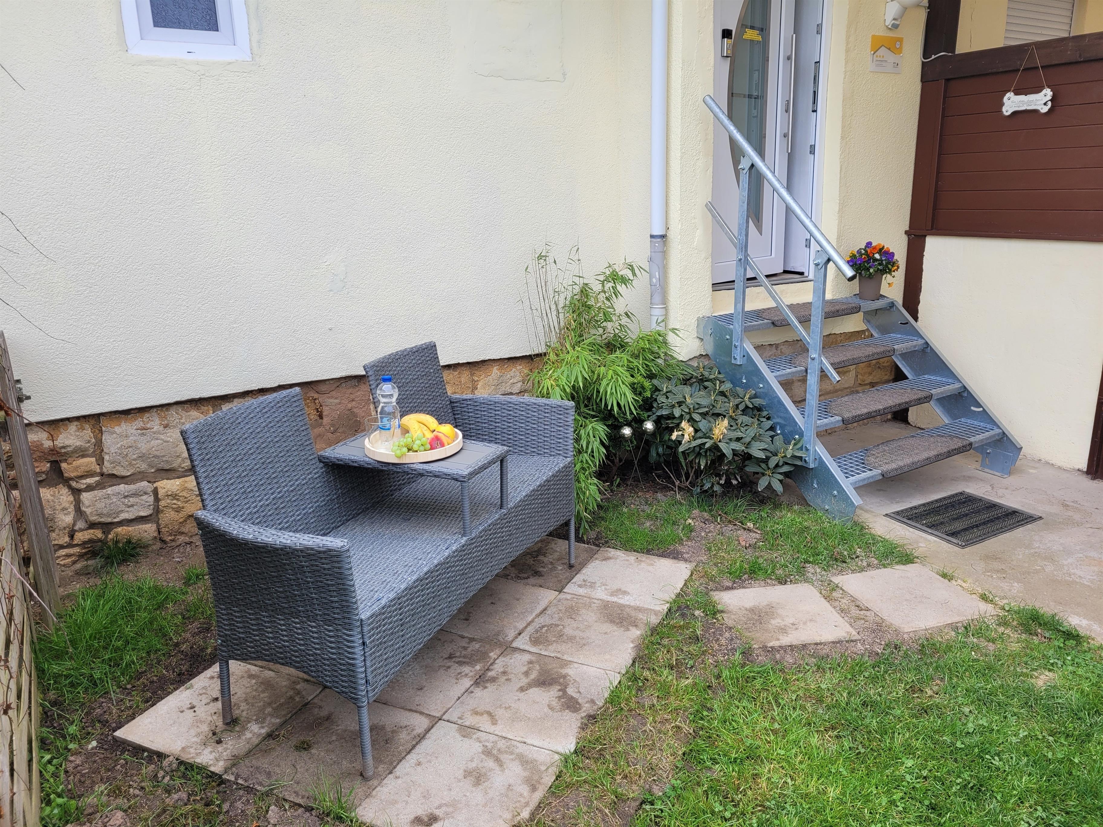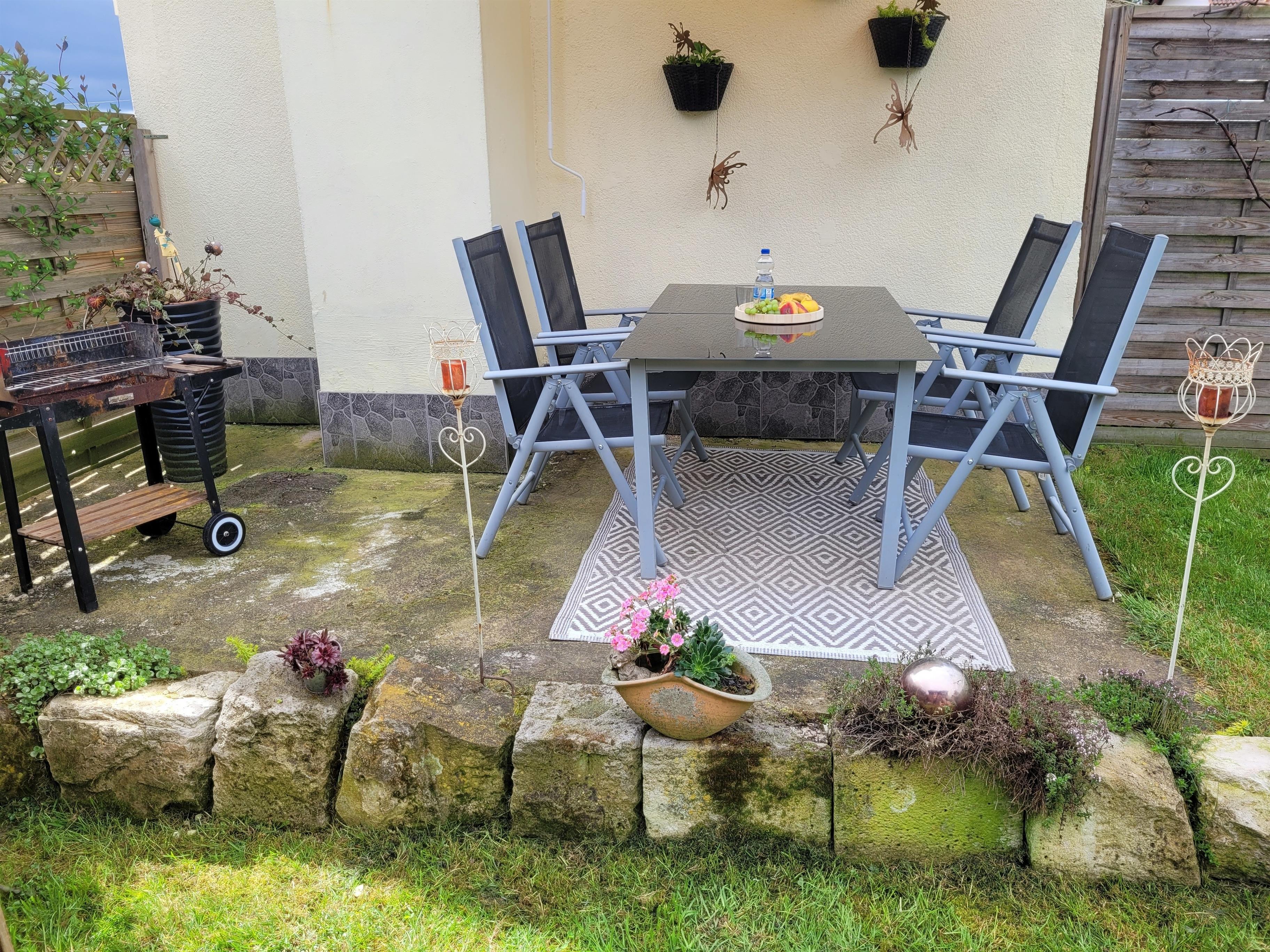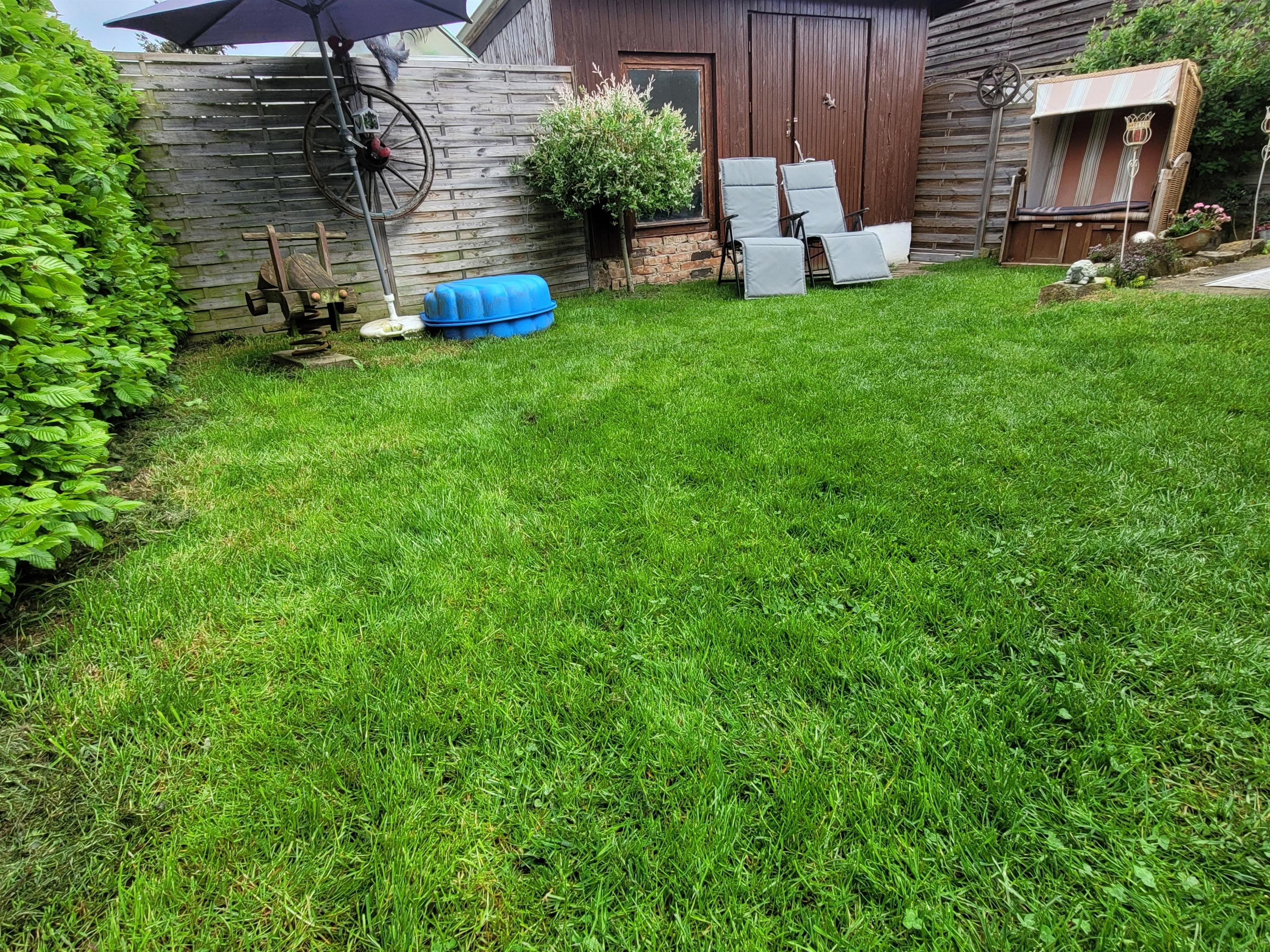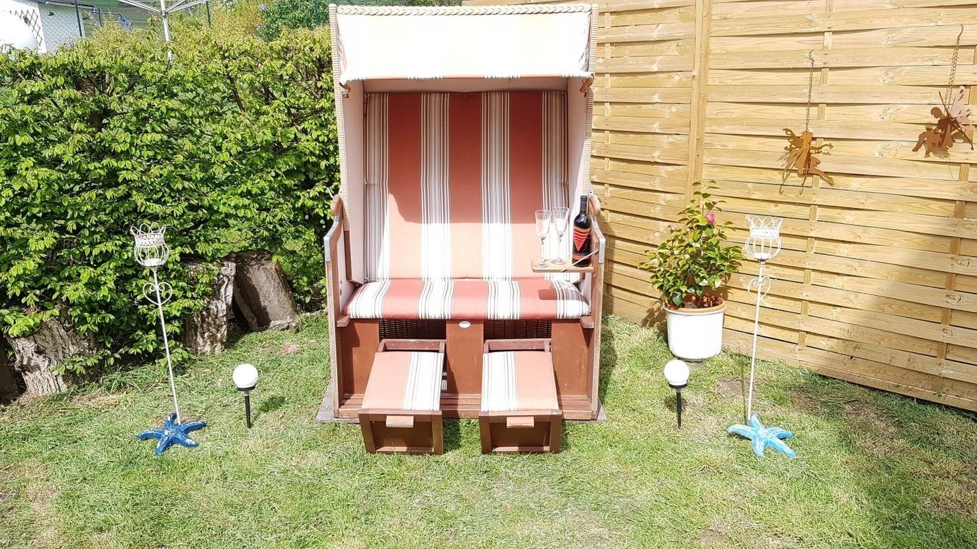 Garten 160 cm hoch eingezäunt, mit Grill, Strandkorb, Liegestühle, Sitzecke