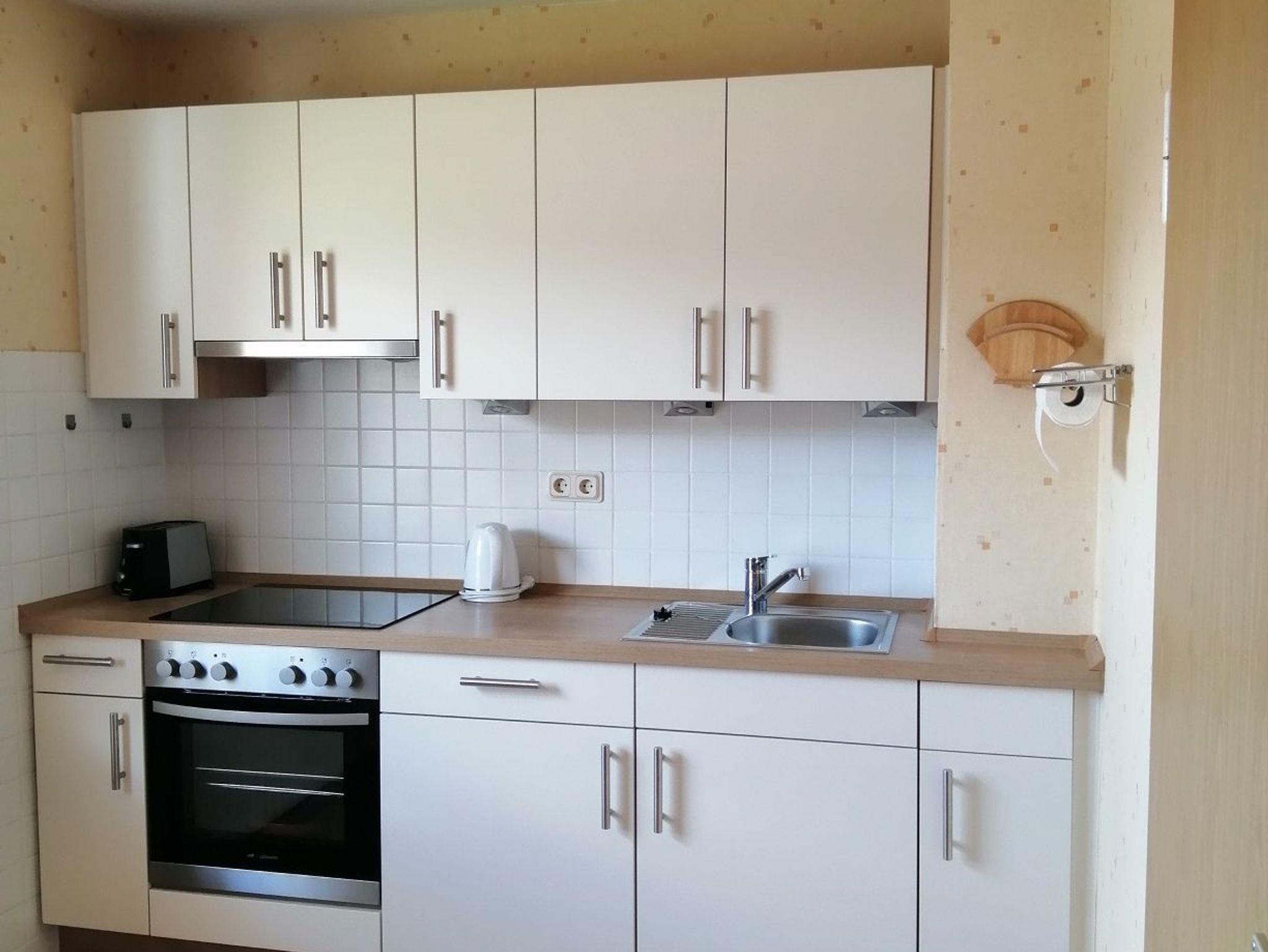 In der Wohnung gibt es eine separate Küche, die komplett ausgestattet ist und alles bietet, was man für die Zubereitung von Mahlzeiten benötigt. Dazu gehören ein Backofen, ein Kühlschrank, eine Mikrowelle, eine Kaffeemaschine, ein Toaster sowie ein Wasser- und Eierkocher.
