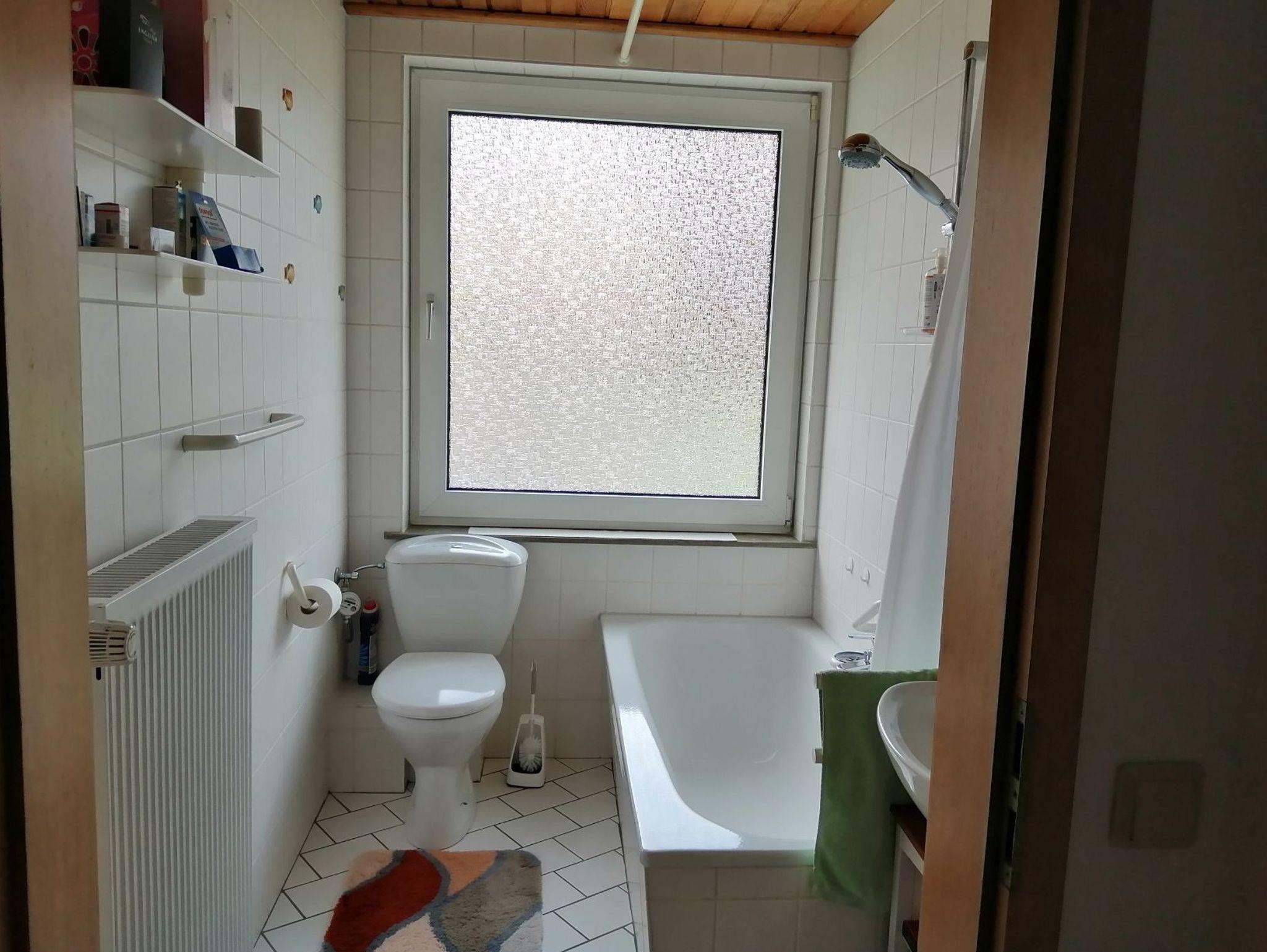 Das Badezimmer verfügt über eine Badewanne. Bettwäsche und Handtüchern sind vorhanden. Somit brauchen Sie sich keine Gedanken über die Mitnahme von dieser zu machen.