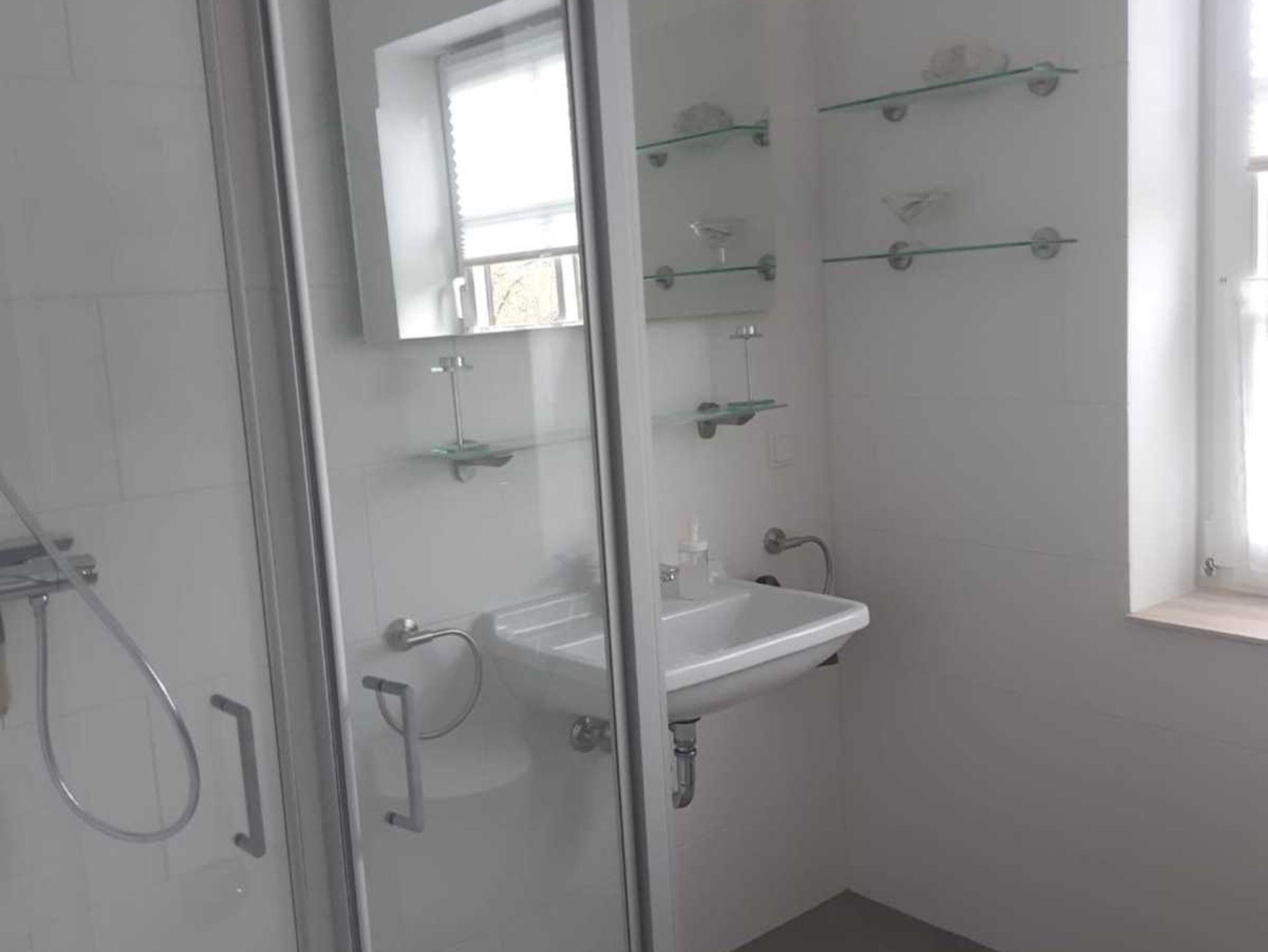 Appartment Fuldablick, geschmackvolle 55 m² große helle und komplett renovierte Feriewohnung im 1.Stock. Boxspringbett, komfortable Sitzecke, moderne Einbauküche. Fuldablick zum Süden.