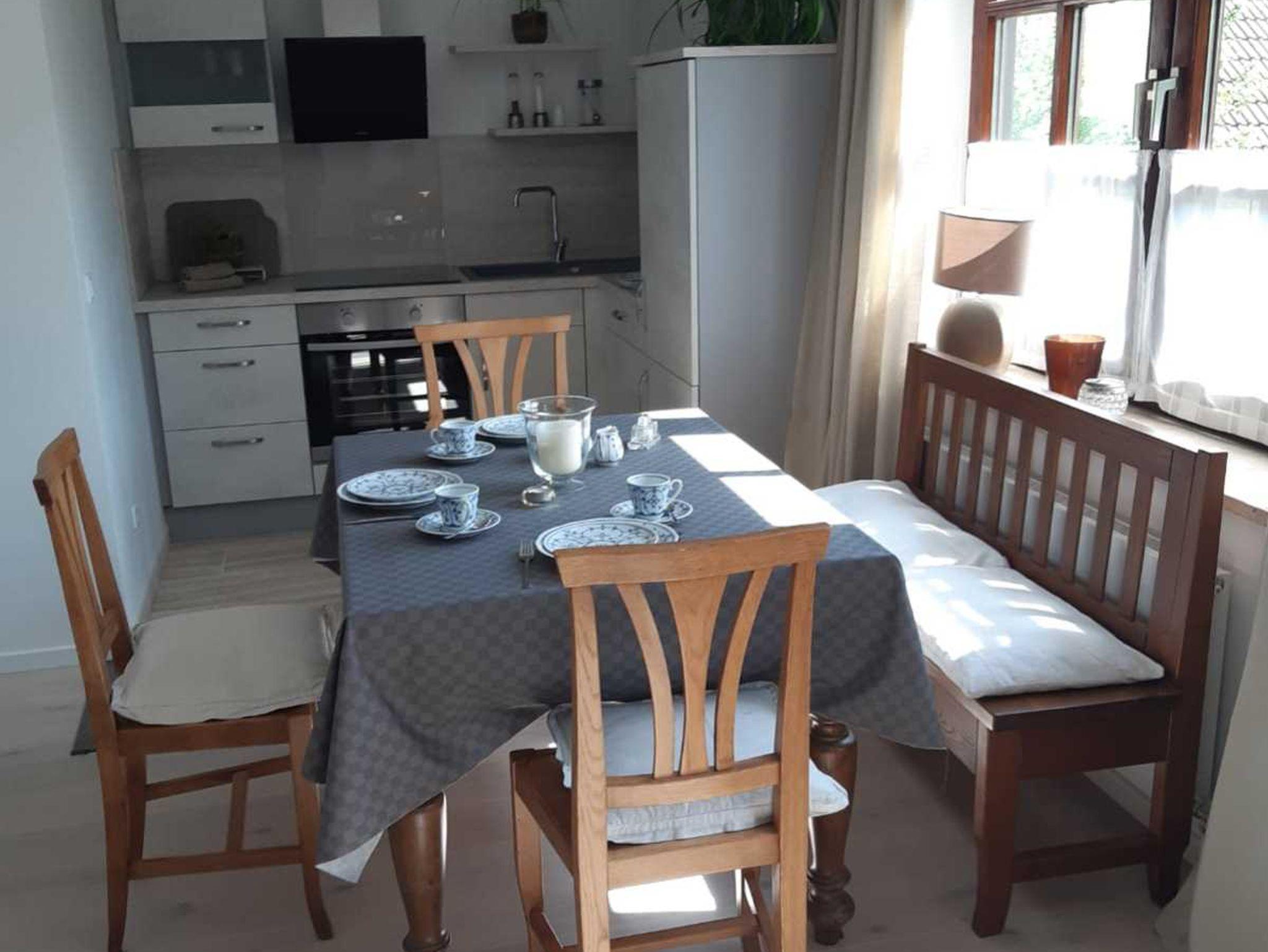 Das Apartement Fuldablick befindet sich im 1. Stock in Südlage. Modern eingerichtet, Nichtraucherwohnung, natürliche Materialien: Gips, Eichenparkett, Travertin, Steinfliesen. Boxspringbett, Eckgarnitur, moderne Einbauküche, Trockner, Waschmaschine.