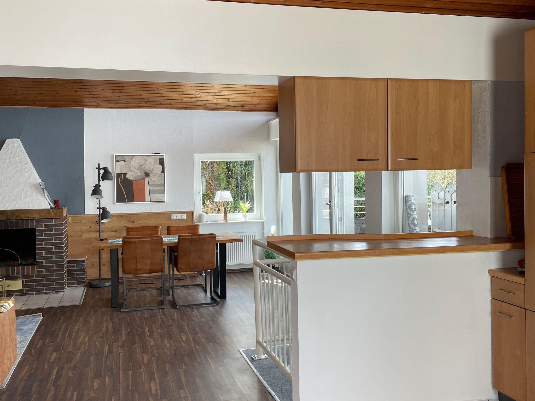 Genießen Sie die Großzügigkeit dieses Chalets in einer der schönsten Lagen Hann. Mündens. Ruhig, sonnenverwöhnt, zentrumsnah und doch im Grünen. Hier können Sie die Seele baumeln lassen! Durch die großen Panoramafenster im Wohnbereich und vom großen Balkon haben Sie einen fantastischen Blick auf die Hann. Mündener Altstadt, die Tillyschanze, den Reinhardswald und das Wesertal. Relaxen Sie im Sommer in gemütlichen Loungemöbeln oder verfolgen Sie spektakuläre Sonnenuntergänge bei einem Glas Wein am Abend. Der terrassierte Naturgarten ist zu jeder Jahreszeit ein Wohlfühlort, aber besonders zur Blütezeit der Magnolien, Forsythien und Rhododendren. Das lichtdurchflutete Chalet erstreckt sich über 2 Etagen, die mit einer schmaleren Wendeltreppe verbunden sind. Die großen Schlafzimmer liegen mit Blick und Ausgang in den Garten.