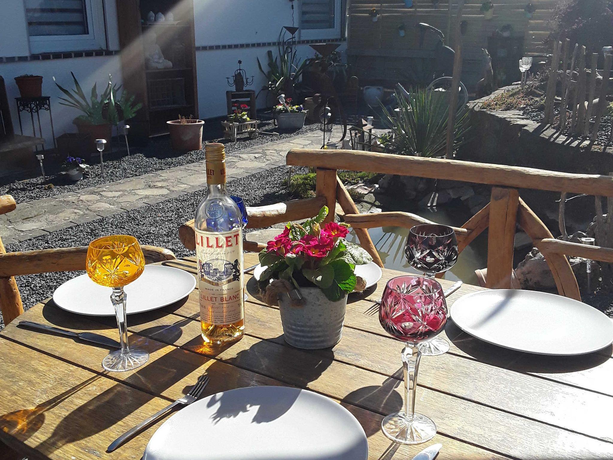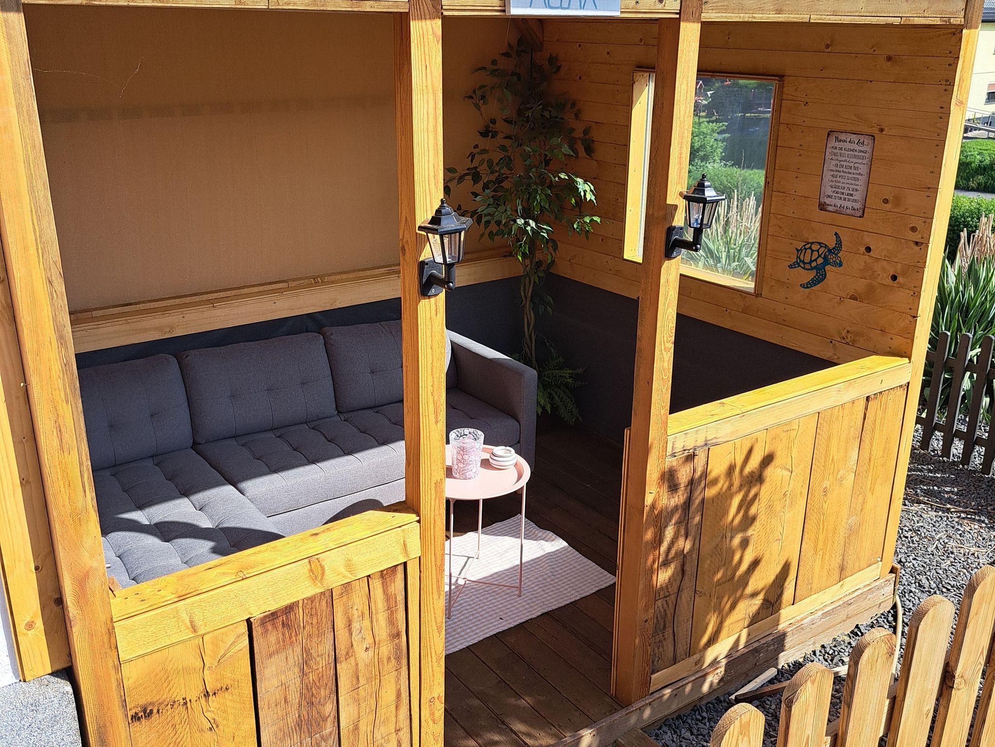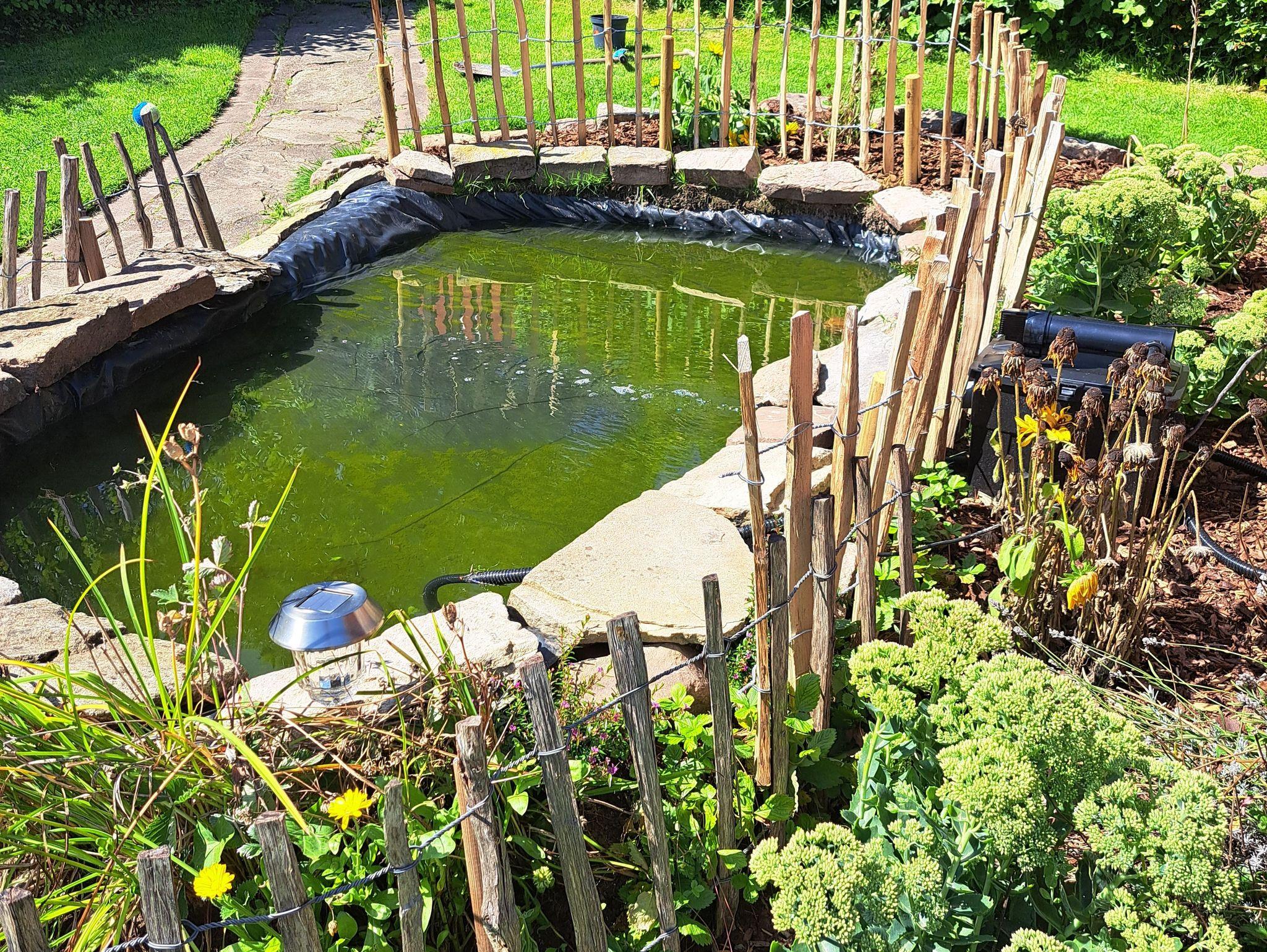 Neu renovierte 2-Zimmer-Ferienwohnung (56 m²), Küche, Bad und Balkon. Großzügiger Außenbereich mit einer Gartenhütte zum Darten, Grillhütte, Pool und Koiteich, Terrasse und Liegestühlen zum Verweilen, sowie einem Sandkasten und ein Trampolin.