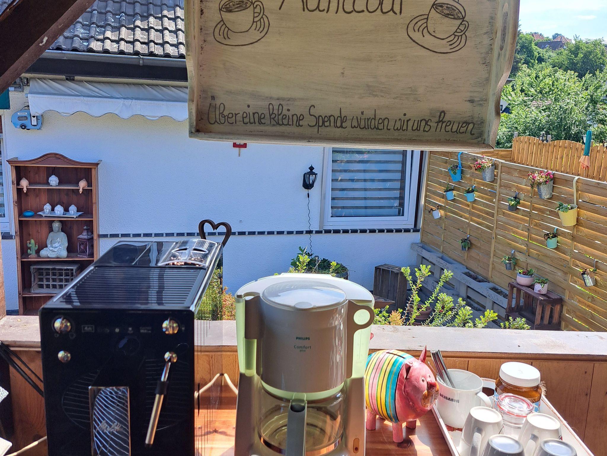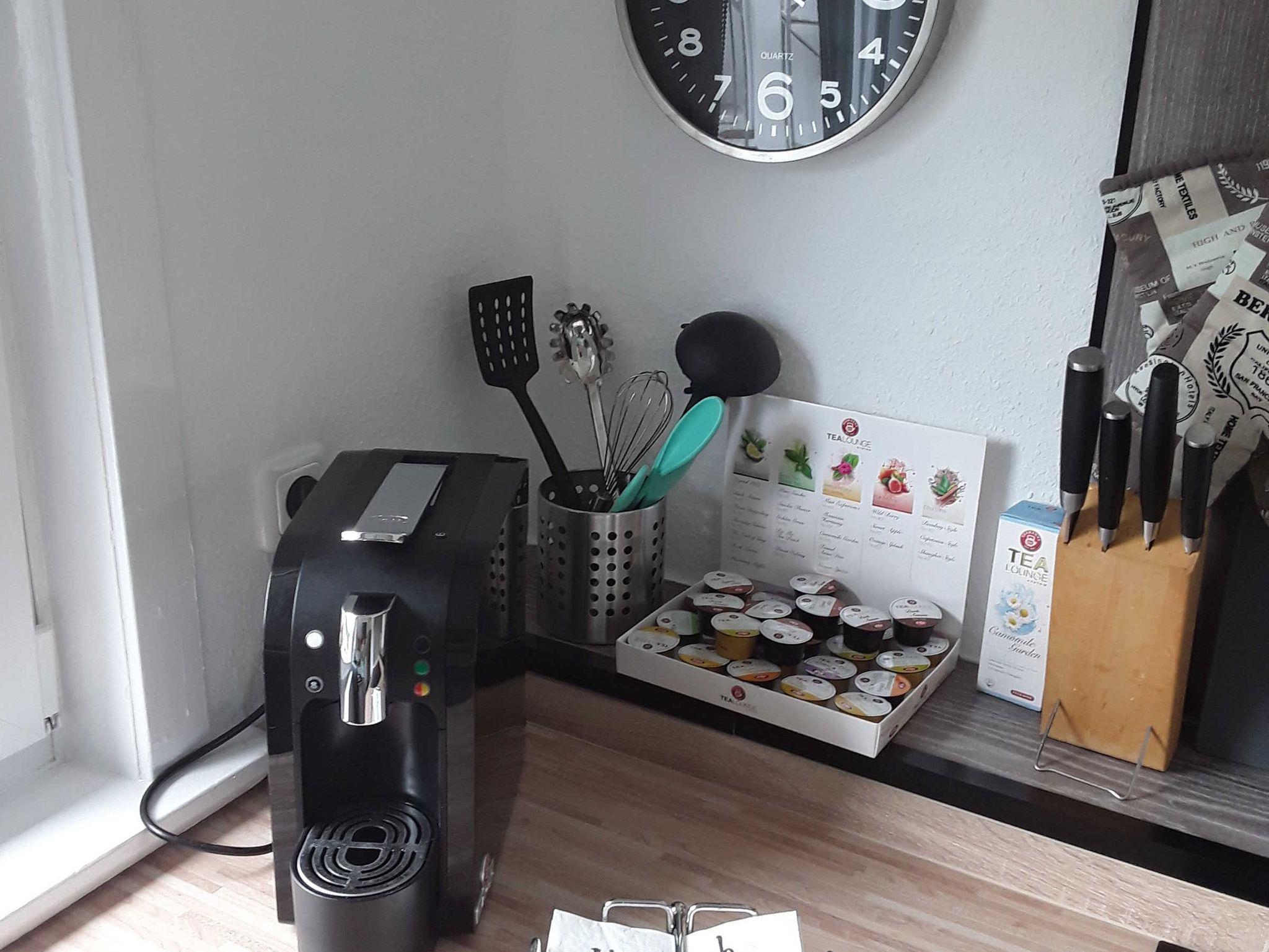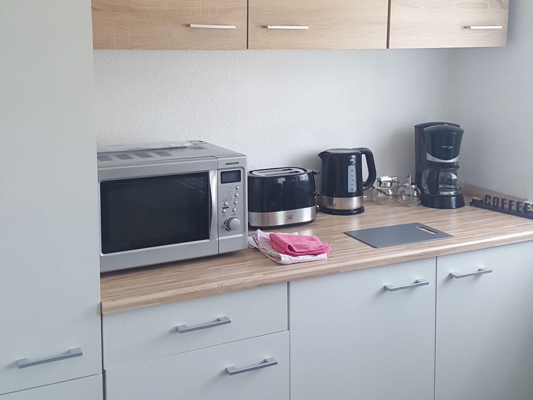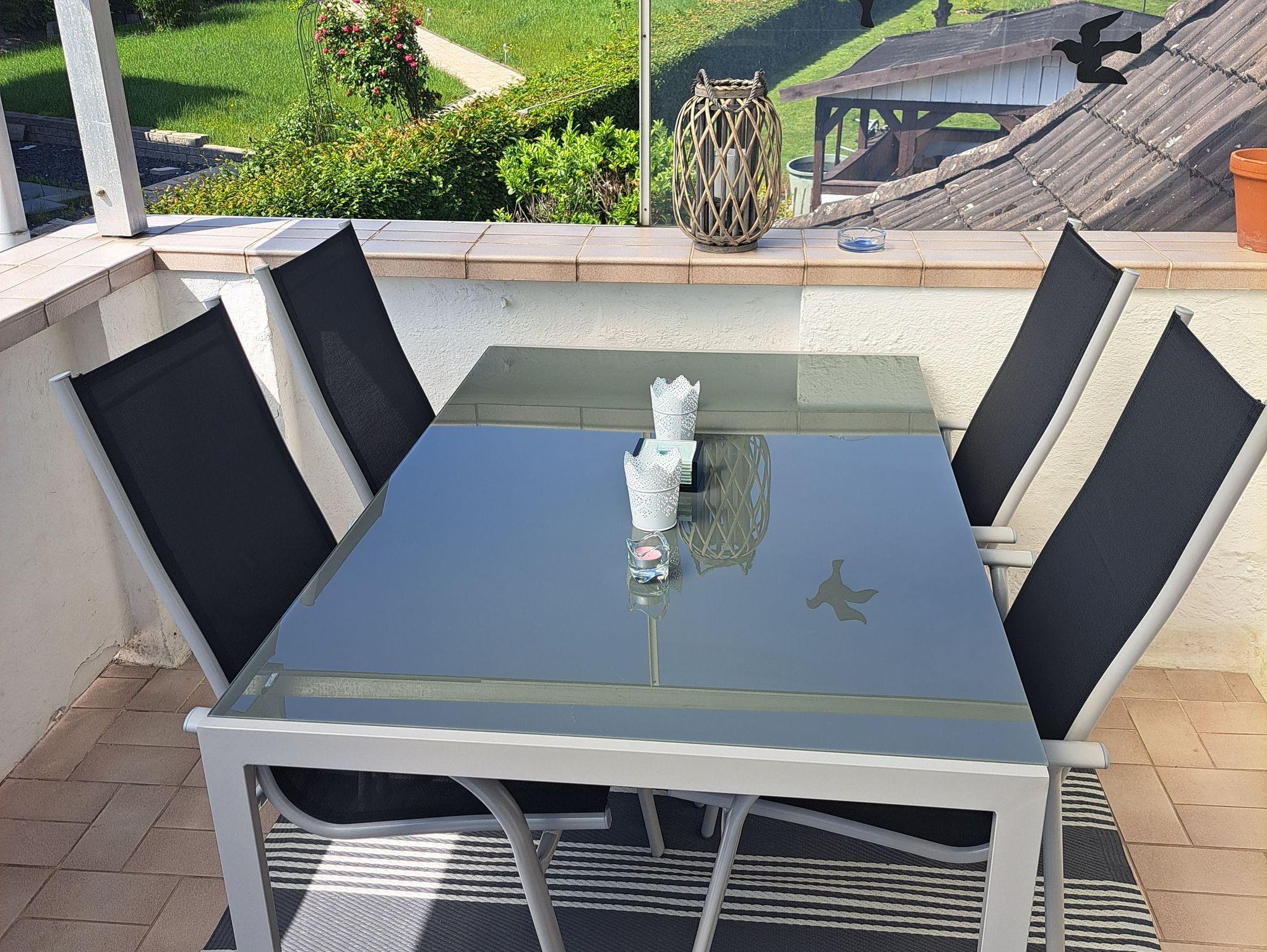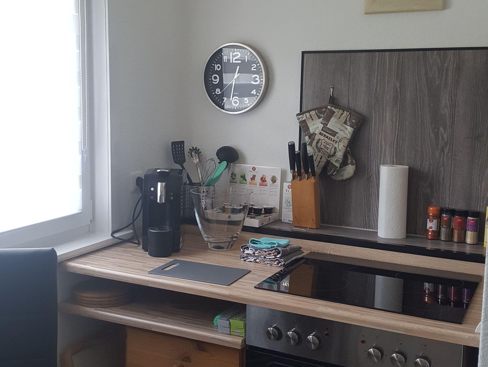 Essen in der Küche Max 3 Personen, auf dem Balkon 4 Personen.
