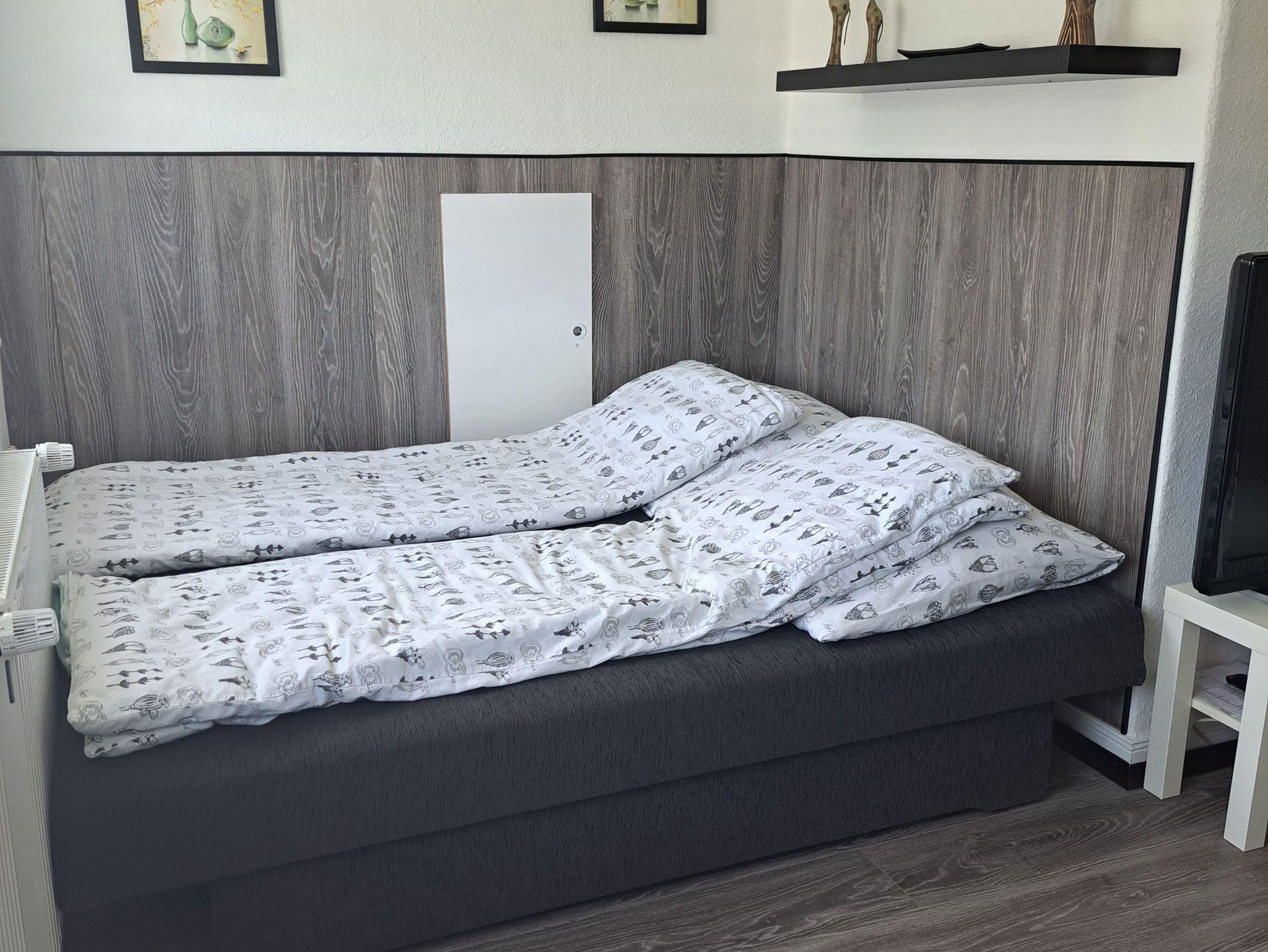 2-Raum Ferienwohnung in der 1. Etage mit Balkon. Schlafzimmer mit Doppelbett( 1,80x2,00 m) und Wohn-/ Schlafzimmer mit Schlafcouch. Küche voll ausgestattet. Internet / W-LAN frei nutzbar.