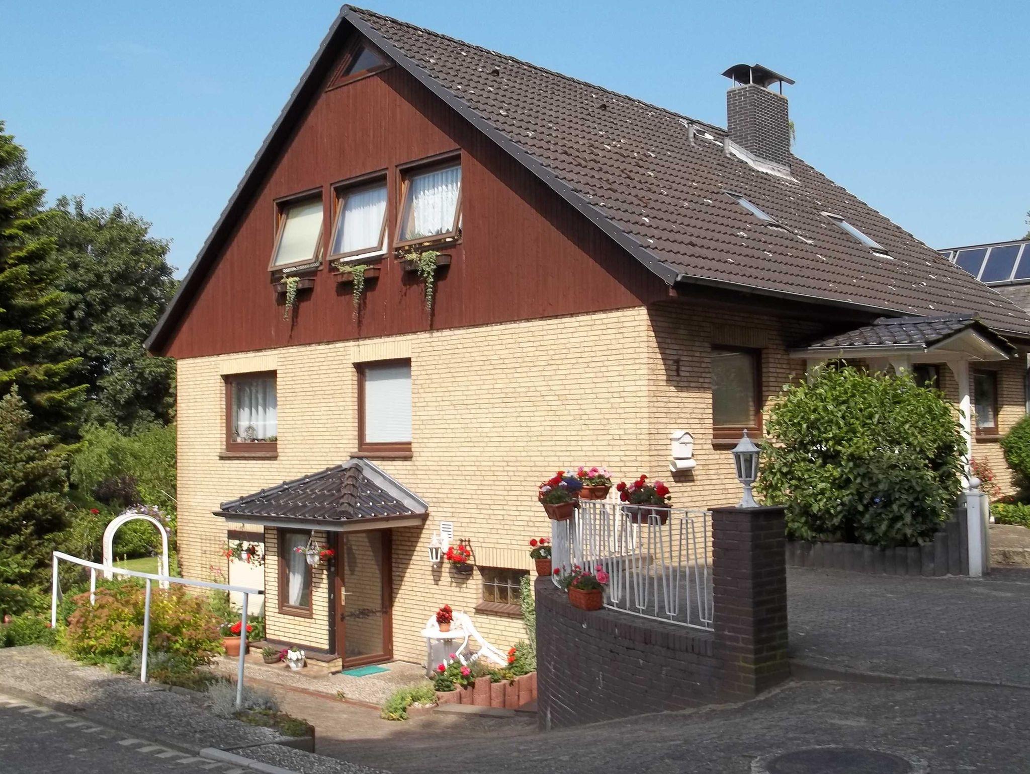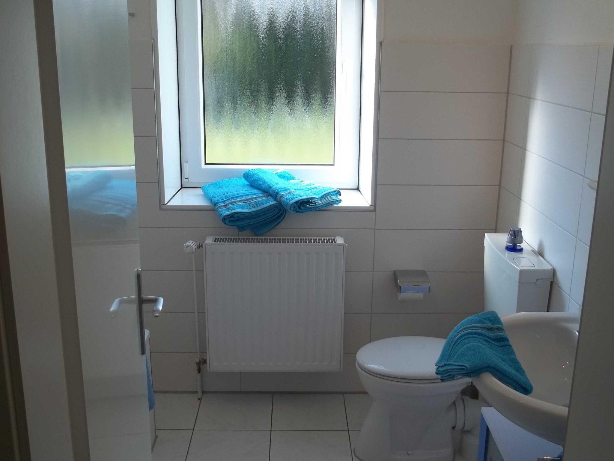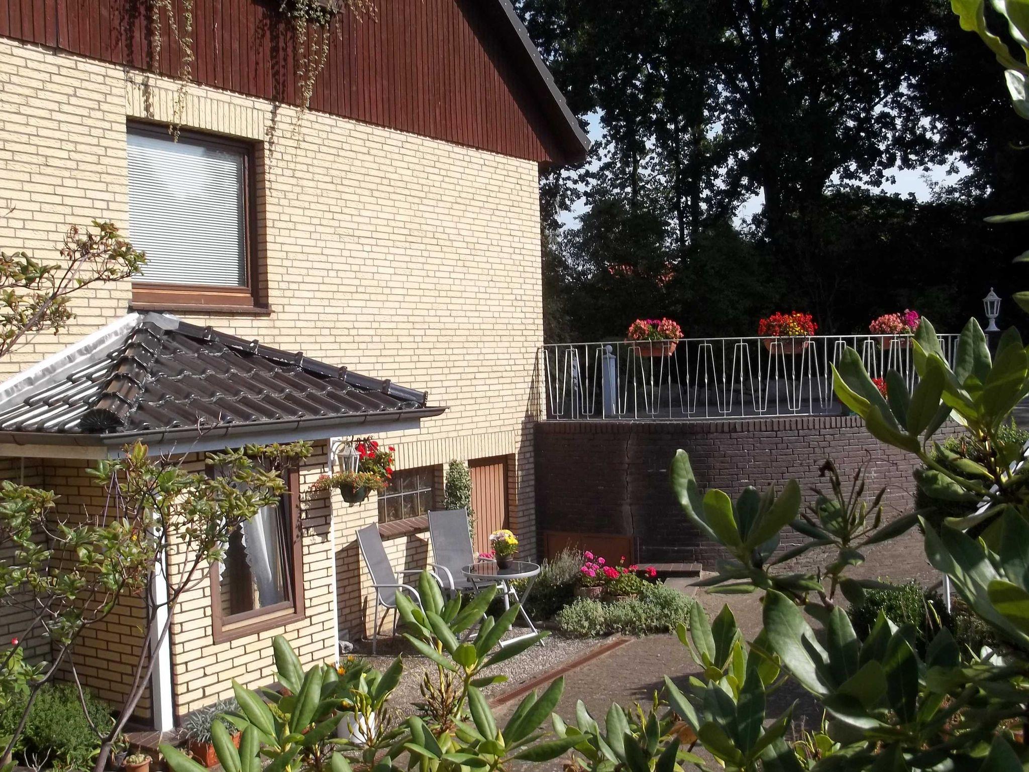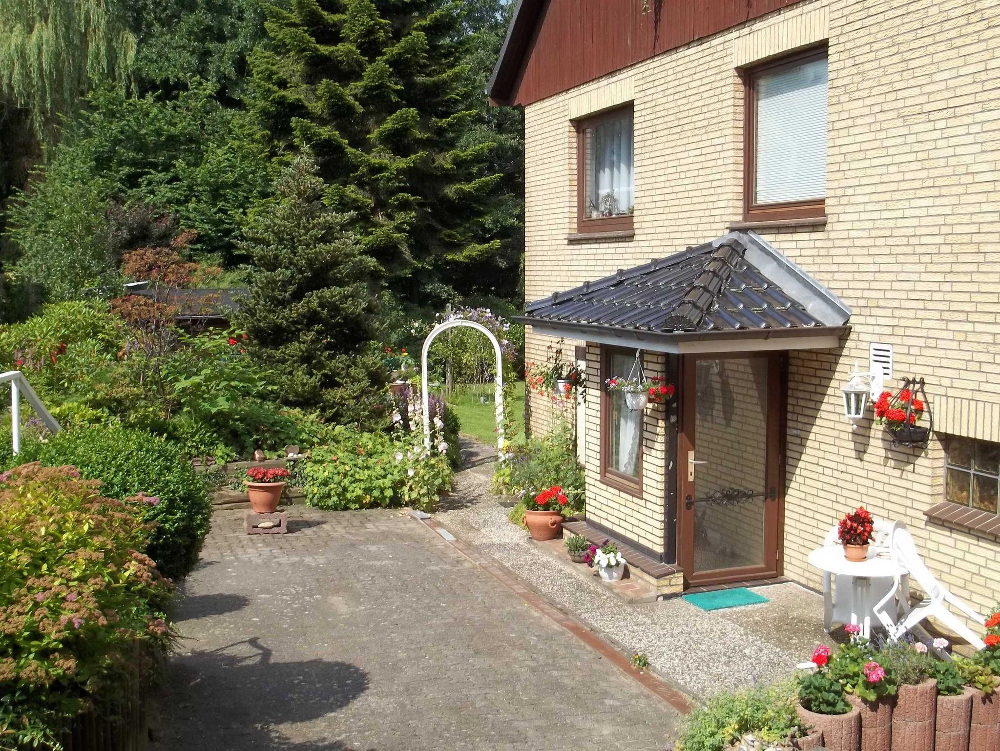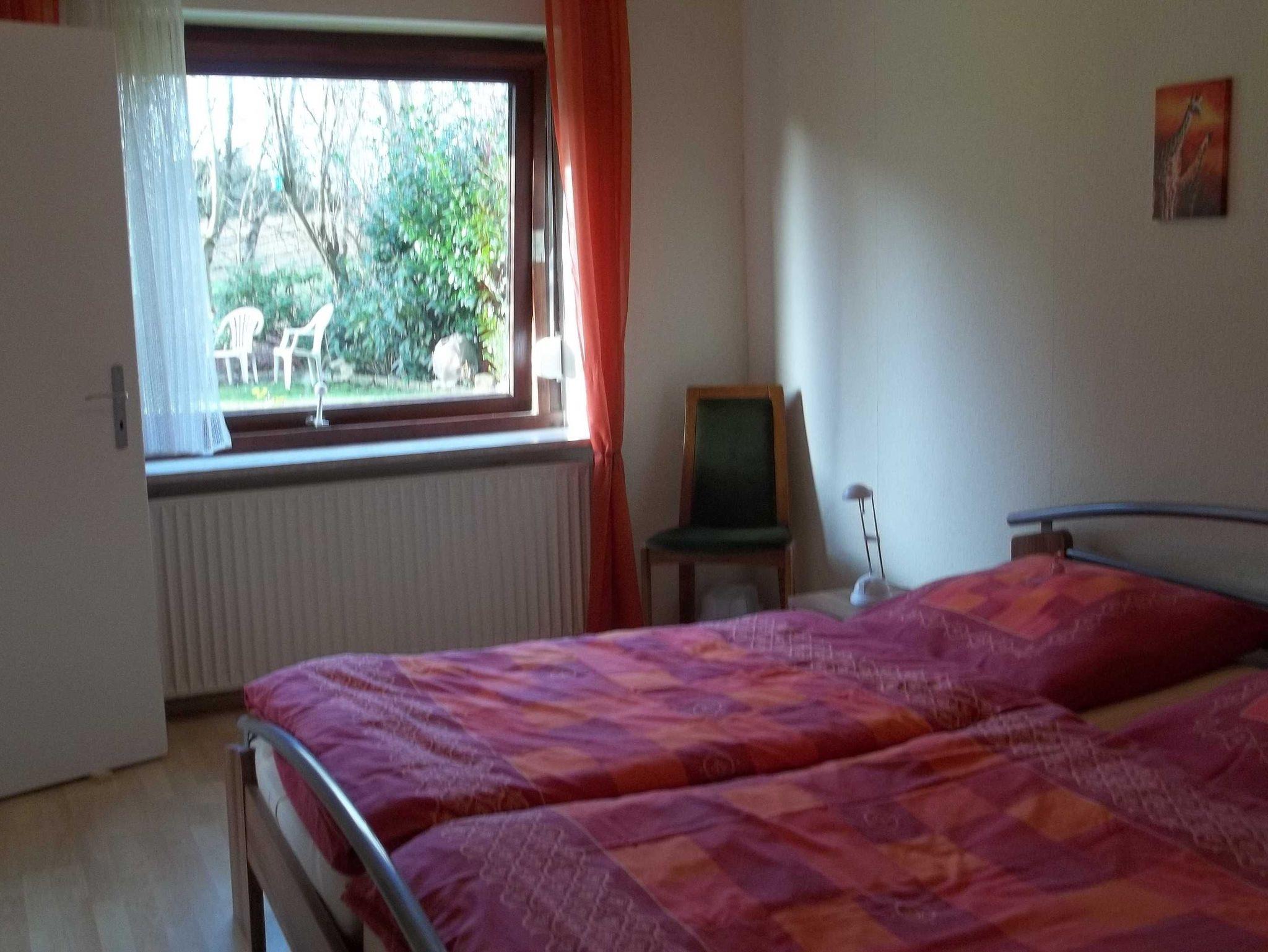 Ferienwohnung mit vollständig eingerichteter Küche, Wohnzimmer mit Flachbildfernseher ein Schlafsofa ca. 1,40x2,00 und Blick in unseren Garten, Schlafzimmer mit Doppelbett ca. 1,80 x 2.00 und einem Kleiderschrank mit großem Spiegel. Das Bad wurde 2017 neu eingebaut mit kombinierter Dusche und Badewanne und WC. Die Wohnung ist hell, ruhig und gemütlich. Das Küchenfenster geht nach Südosten und die weiteren Fenster nach Südwesten. Herrlicher Blick ins Grüne.