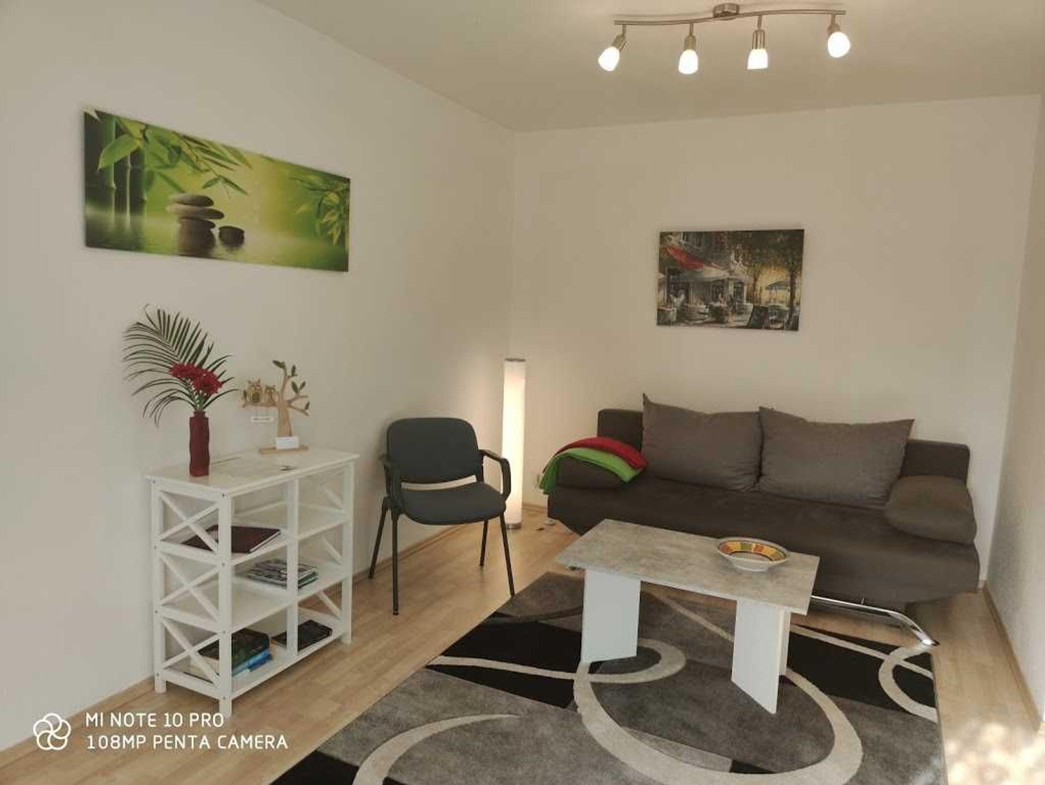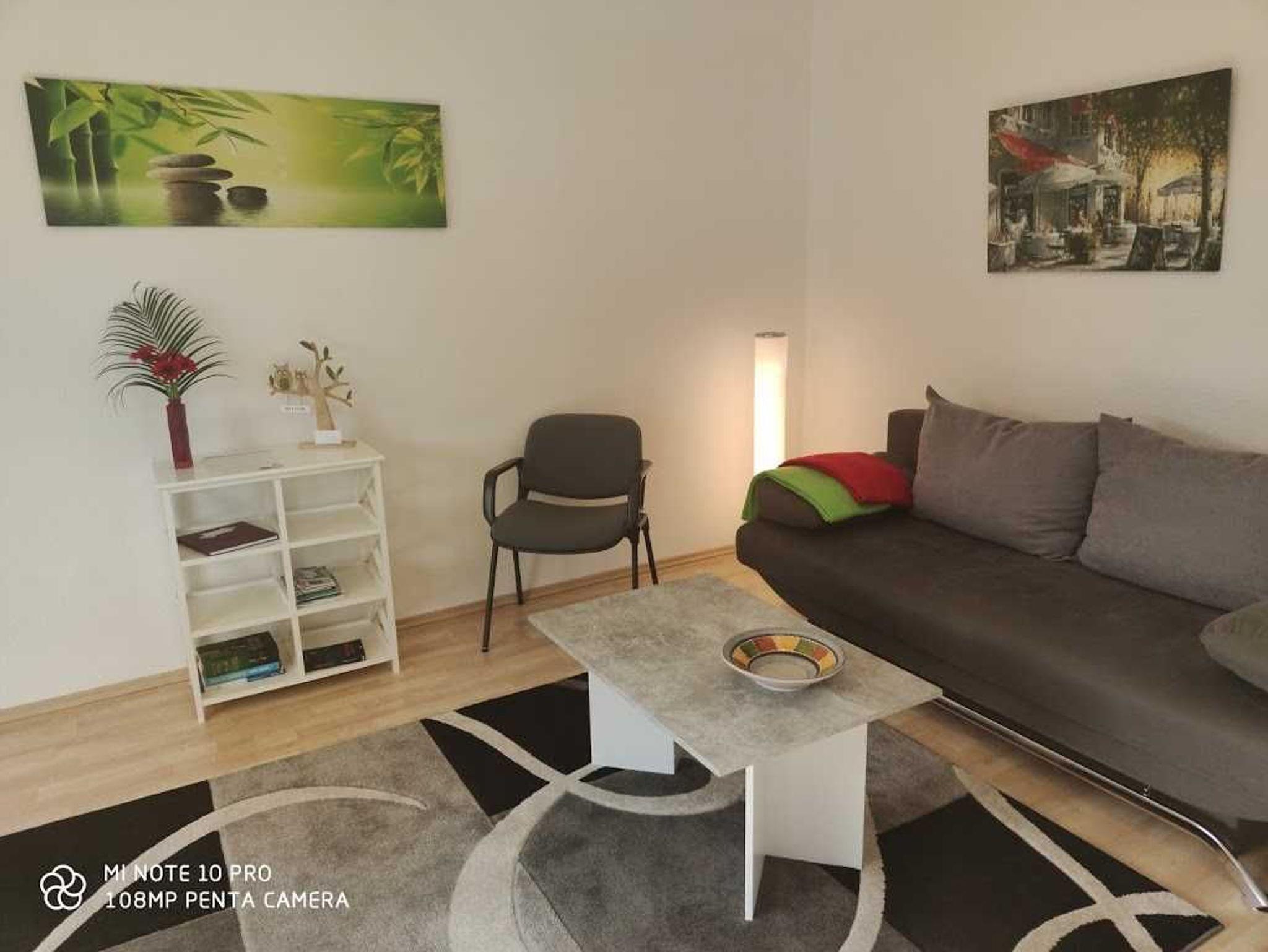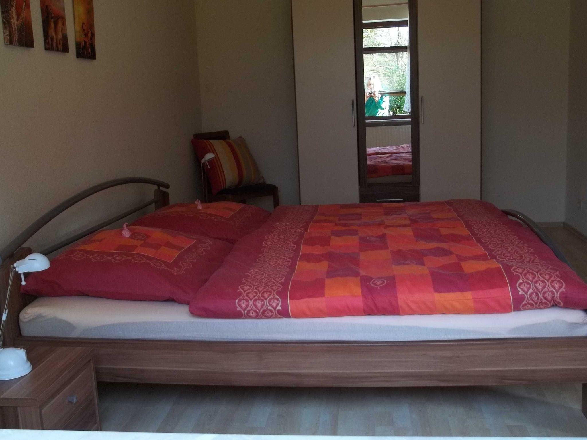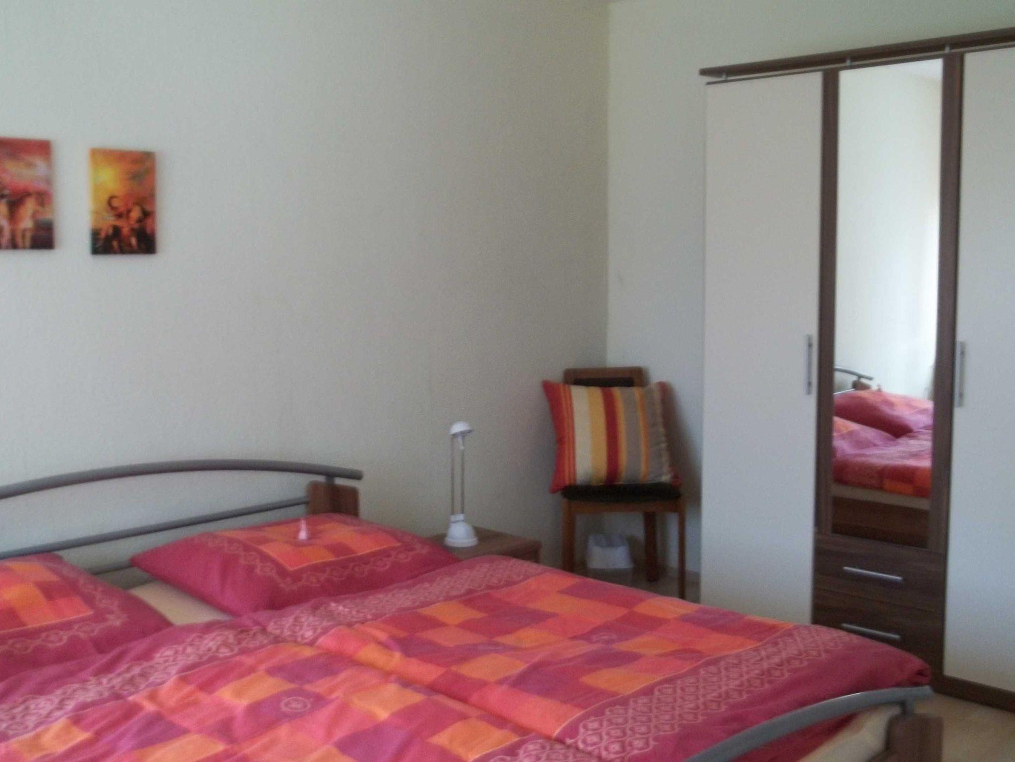 Unsere ca. 60 qm große Ferienwohnung verfügt über eine vollständig eingerichtete Küche. Im Wohnzimmer mit Flachbildfernseher steht ein Schlafsofa ca. 1,40 x 2,00. Die Einrichtung ist gemütlich und modern. Das Schlafzimmeer ist ausgestattet mit einem Doppelbett ca. 1,80 x 2,00 und einem Kleiderschrank mit großem Spiegel. Es gibt einen kleinen Abstellraum und natürlich einen separaten Eingang. Zu unserer Ferienwohnung gehört eine kleine sonnige Terrasse und natürlich darf man auch in unseren Garten. Alles vorhanden für einen erholsamen Aufenthalt. Wir freuen uns auf Sie.
