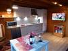 An der gegenüber liegende Seite des Raumes ist eine neue voll ausgestattete moderne Küchenzeile integriert mit: Kühlschrank, Gefrierfach, Spülmaschine, Mikrowelle, Herd mit Ceranfeld (4 Kochfelder) und Dunstabzugshaube.