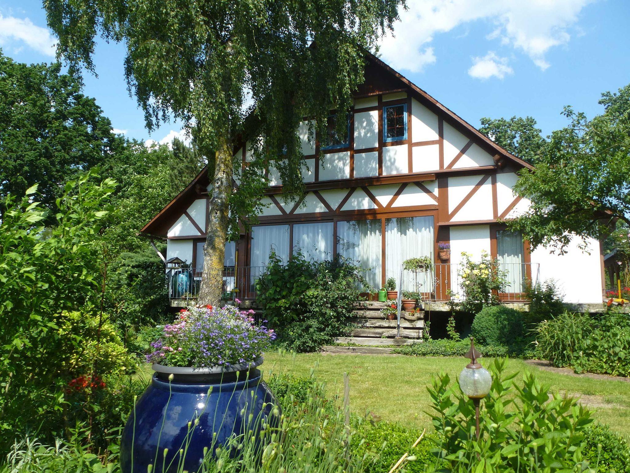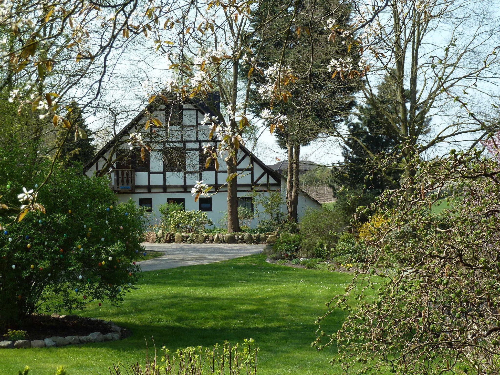 Unser Haus in Buxtehude-Hedendorf ist 1980 mit viel Holz in Fachwerkweise gebaut. Es ist ein Einfamilienhaus mit Einliegerwohnung, diese wird als Ferienwohnung genutzt. Sie ist 50 m² groß und befindet sich im oberen Stockwerk mit eigenem Eingang über eine Außentreppe. Die Fewo verfügt über einen großen Wohnraum mit gemütlicher Sitzecke und integrierter Küche mit Eßplatz sowie Schlafzimmer, Badezimmer, Balkon, Abstellraum und Garderobe.