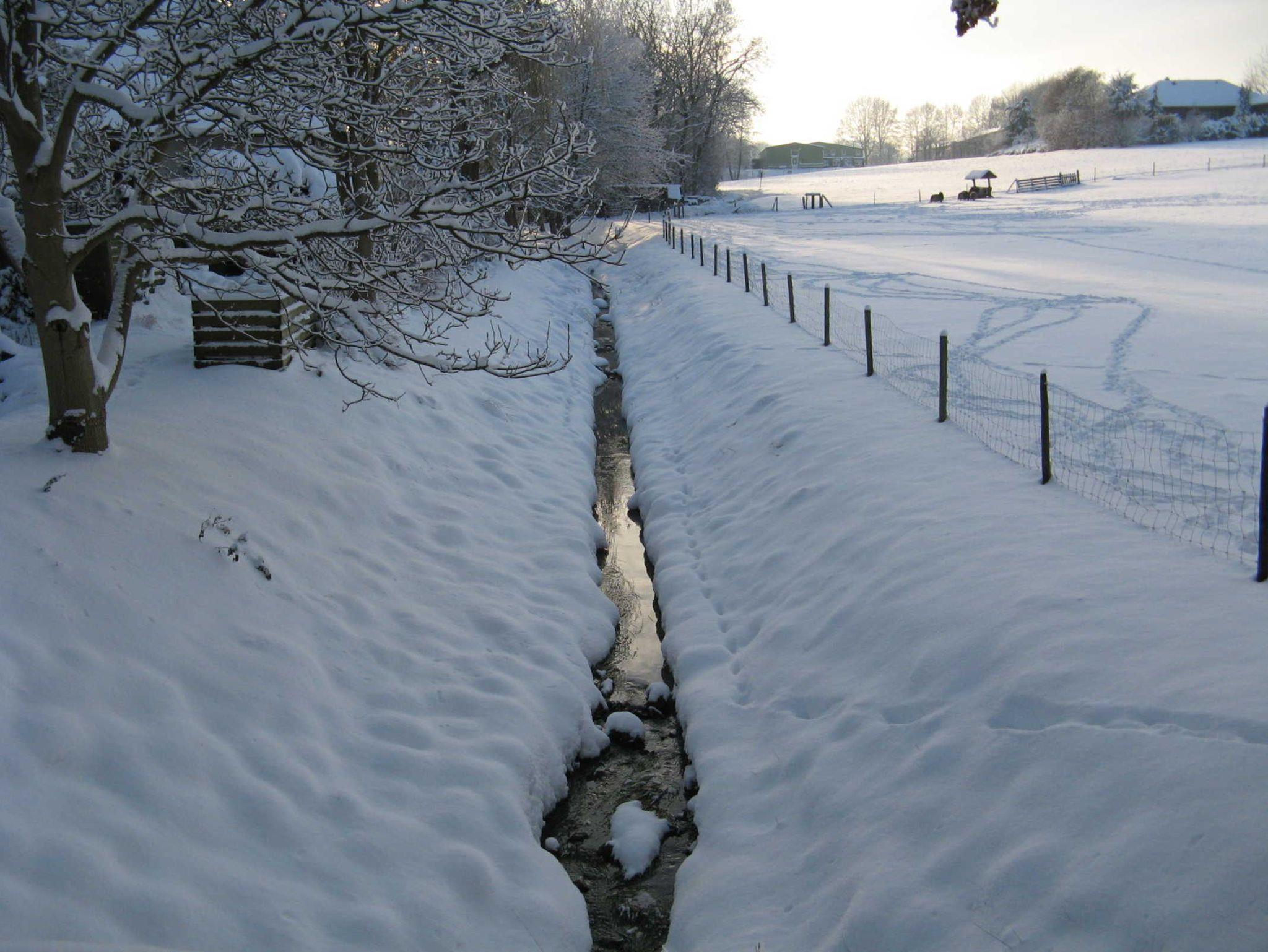 An der Grundstücksgrenze fließt ein kleiner Bach.