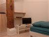 Die Ferienwohnung 2 besteht aus einem kombinierten Wohn-/Schlafzimmer (ca. 15 qm) mit einem Bett, einer integrierten Kochnische und einem WC/Duschbad. Zu der Kochnische gehören neben zwei Kochplatten eine Kaffeemaschine, ein Wasserkocher und ein Toaster. Im Wohn-/Schlafbereich steht ein Fernseher mit Flachbildschirm zur Verfügung. Ein bequemer Fernsehsessel mit Leseleuchte lädt zum entspannten Fernsehen oder Lesen ein. WLAN ist selbstverständlich vorhanden.