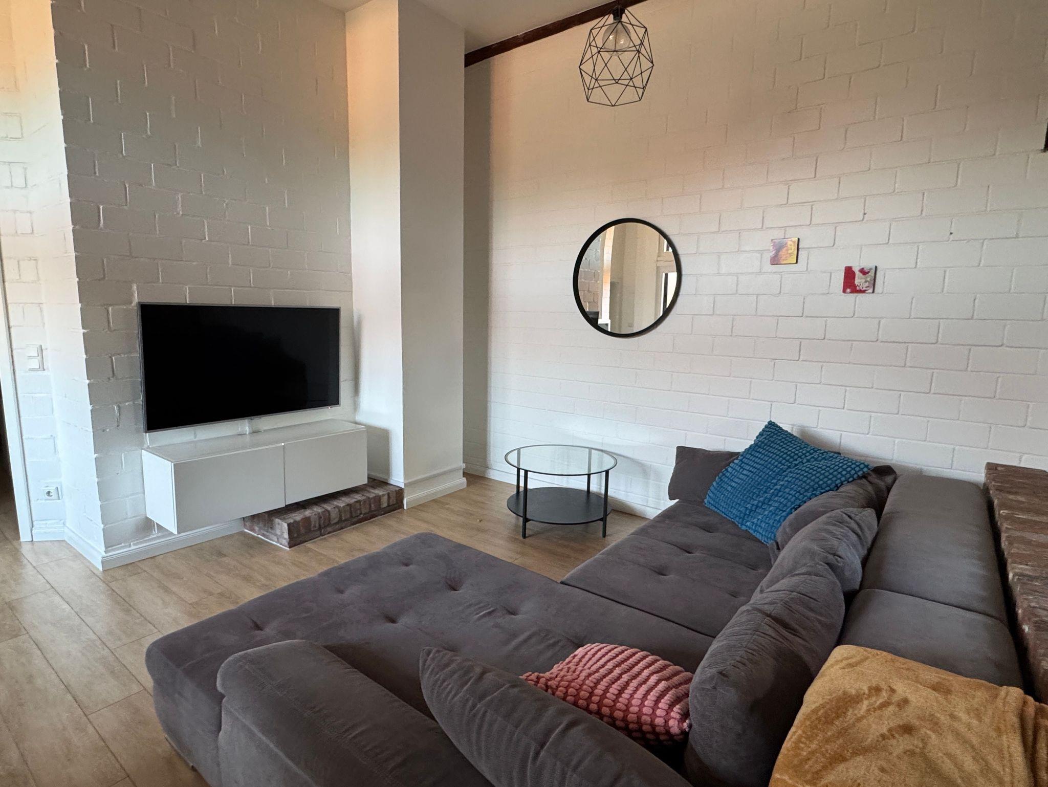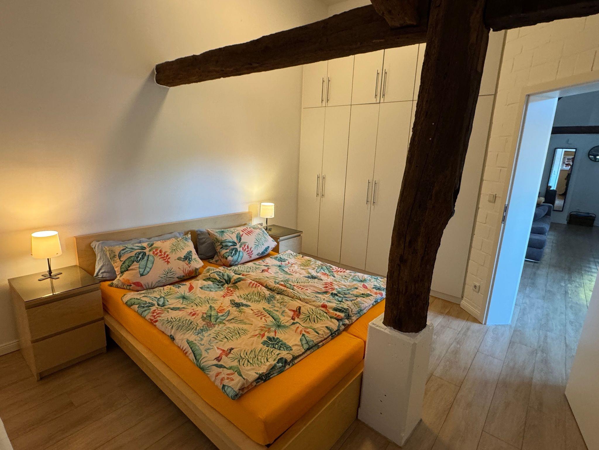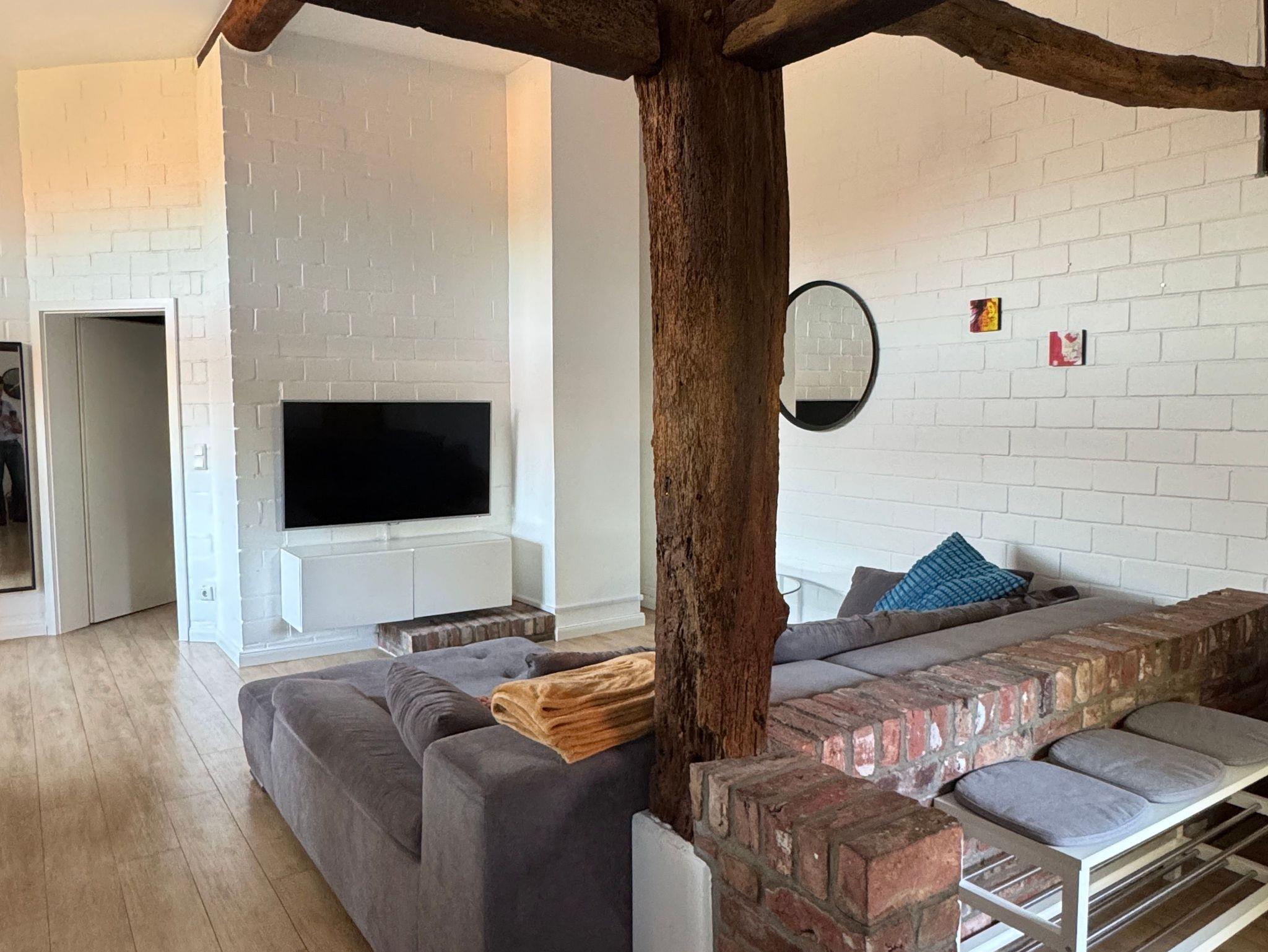 Zentrumsnahe, umfassend modernisierte Ferienwohnung in einem denkmalgeschützten Fachwerkhaus in Stade. Zur Wohnung gehören eine ruhige Terrasse mit Süd-Ausrichtung, ein heller und großzügiger Wohn- und Essbereich sowie eine daran angeschlossene moderne, offene Küche. Ein gemütliches Schlafzimmer sowie ein modernes Bad mit bodengleicher Dusche runden die Mischung aus charmantem Bauernhaus mit Reetdach und zeitgemäßem Wohnkomfort ab. Die hohen Decken und die Holzbalken verleihen der Wohnung ein besonderes Ambiente.