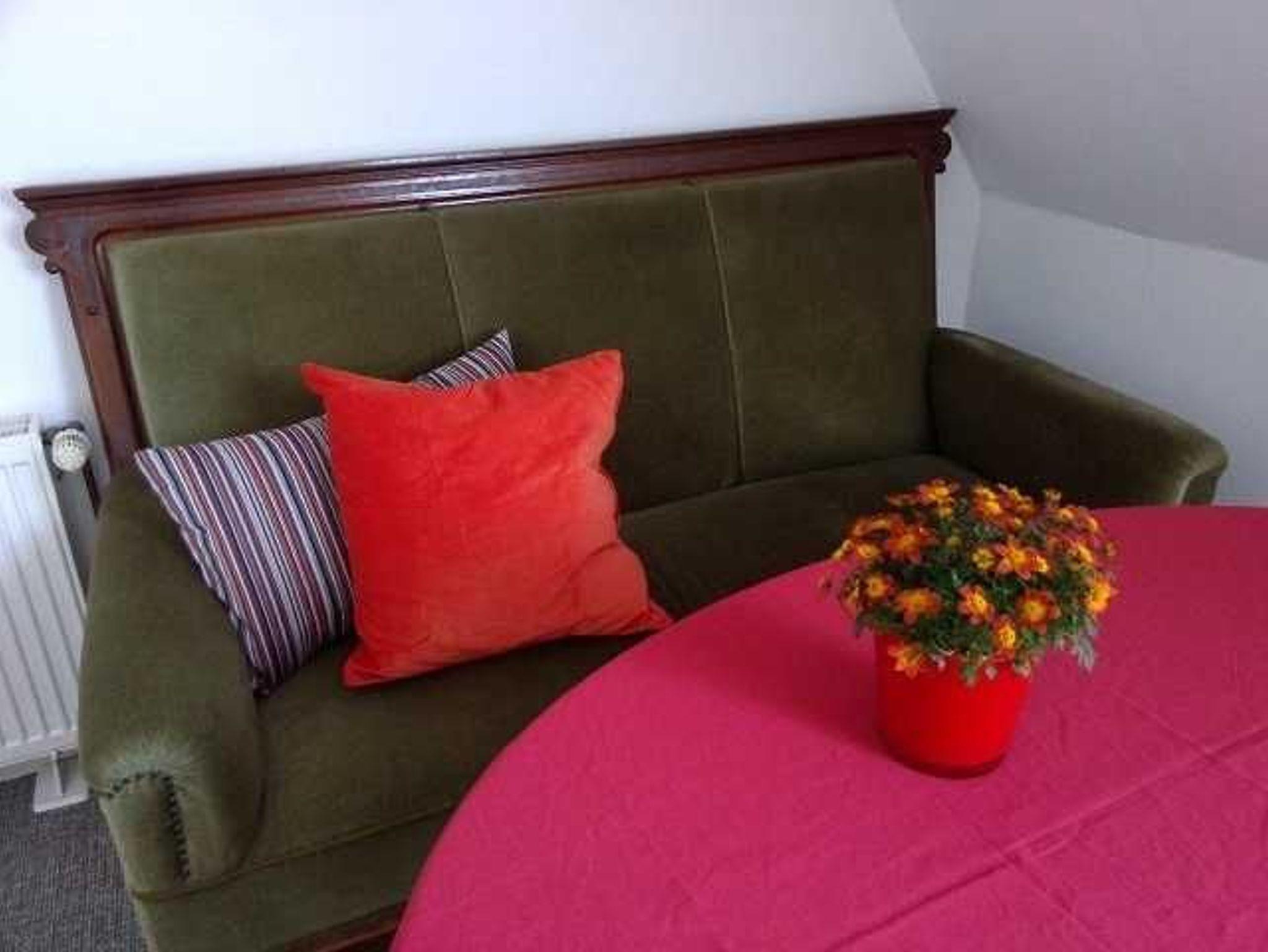 gemütliche Ausstattung, teilweise antike Möbel, Dachgeschoss, Nichtraucherwohnung, Teppichboden, Holzdielen (Kochnische)