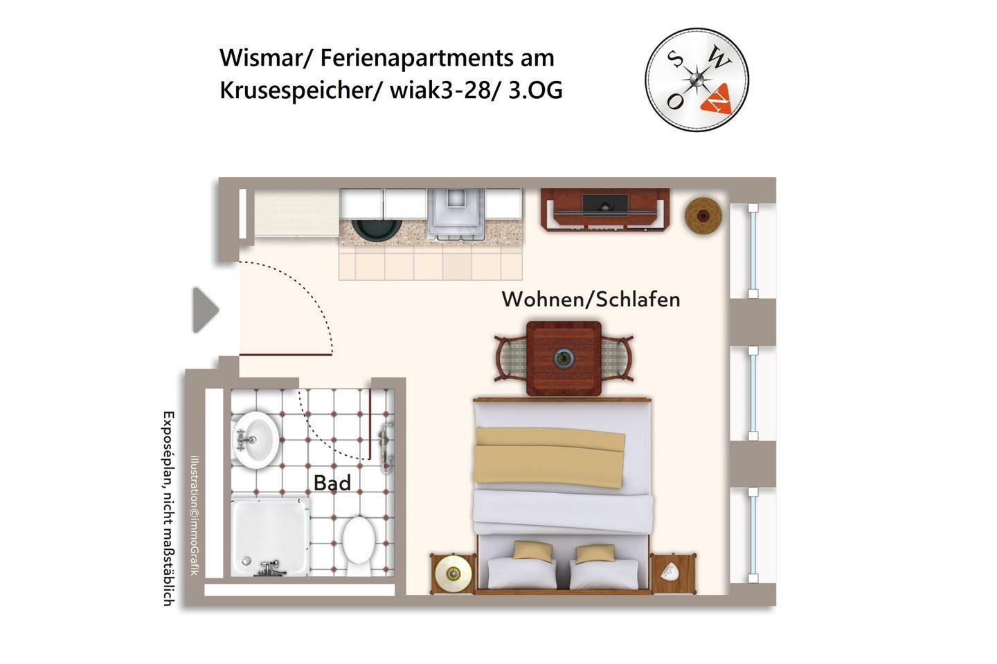 Das hochwertige Apartment befindet sich in nordwestlicher Lage im dritten Obergeschoss des Gebäudes. Der Alte Hafen von Wismar, einer der attraktivsten Orte der Hansestadt, liegt euch hier zu Füßen. Von hier aus lässt sich die Stadt und das schöne Umland ideal erkunden. Der Alte Hafen ist übrigens auch ein sehr beliebter Veranstaltungsort für Events und Feste.