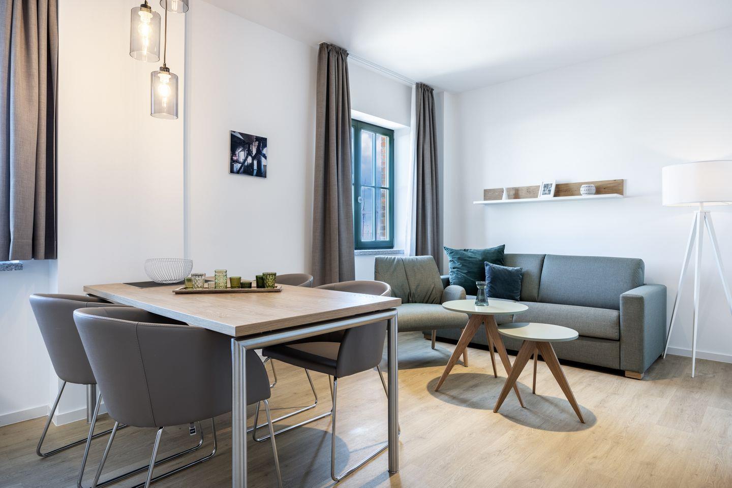 Das 42 m² große, barrierearme 2-Zimmer Apartment ist für bis zu 4 Personen geeignet. Das moderne Apartment mit Balkon und seitlichem Blick auf den Hafen verfügt über kostenfreies WLAN.
