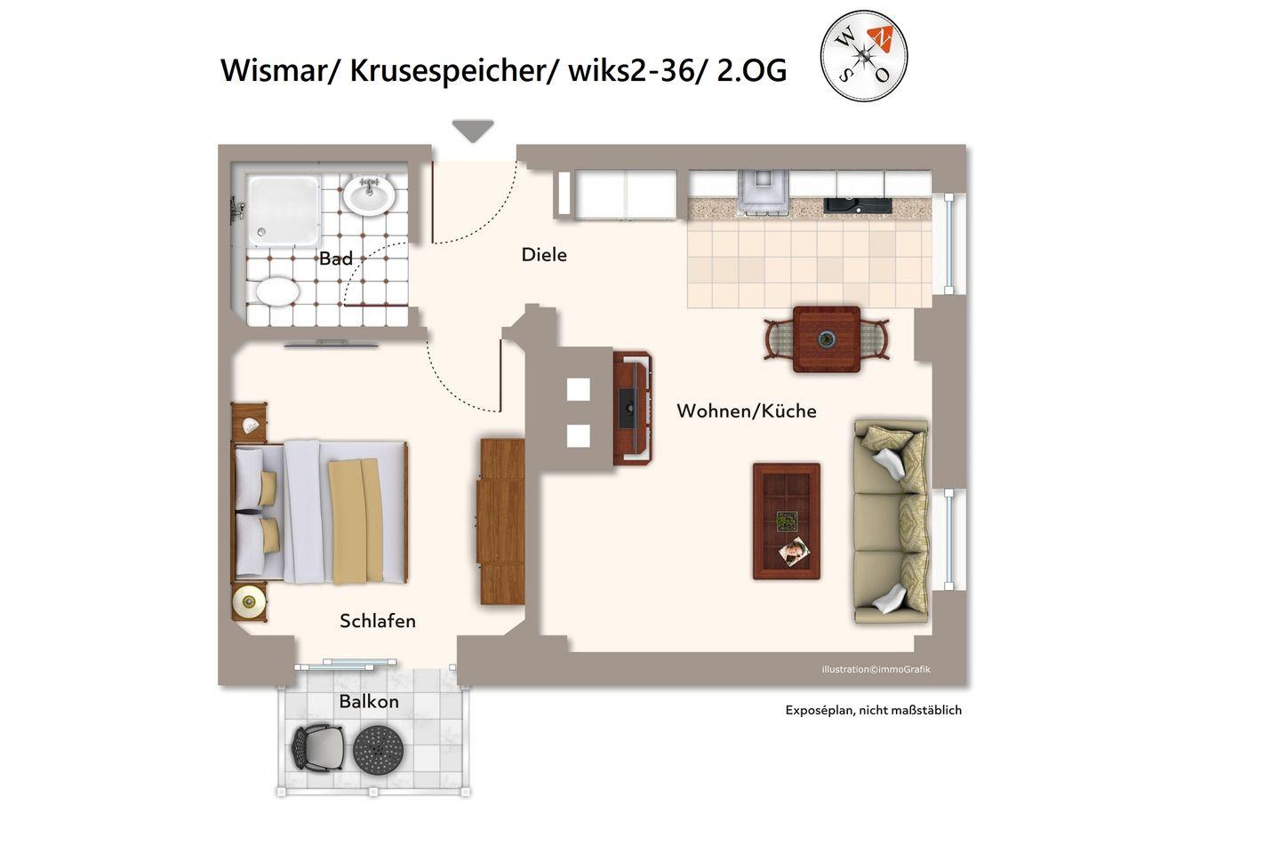 Das Nichtraucher-Apartment in Ost-Lage befindet sich im 2. Obergeschoss des denkmalgeschützten Krusespeichers. Der Alte Hafen von Wismar, einer der attraktivsten Orte der weltoffenen Hansestadt, liegt euch zu Füßen. Von hier aus lässt sich die Stadt und das wunderschöne Umland ideal erkunden. Der Alte Hafen ist übrigens überaus beliebter Veranstaltungsort für Events und Feste und überdies Original-Drehort für SOKO Wismar, die bekannte ZDF-Serie!