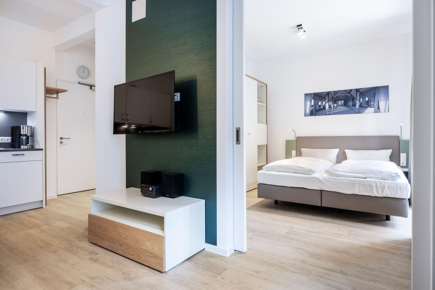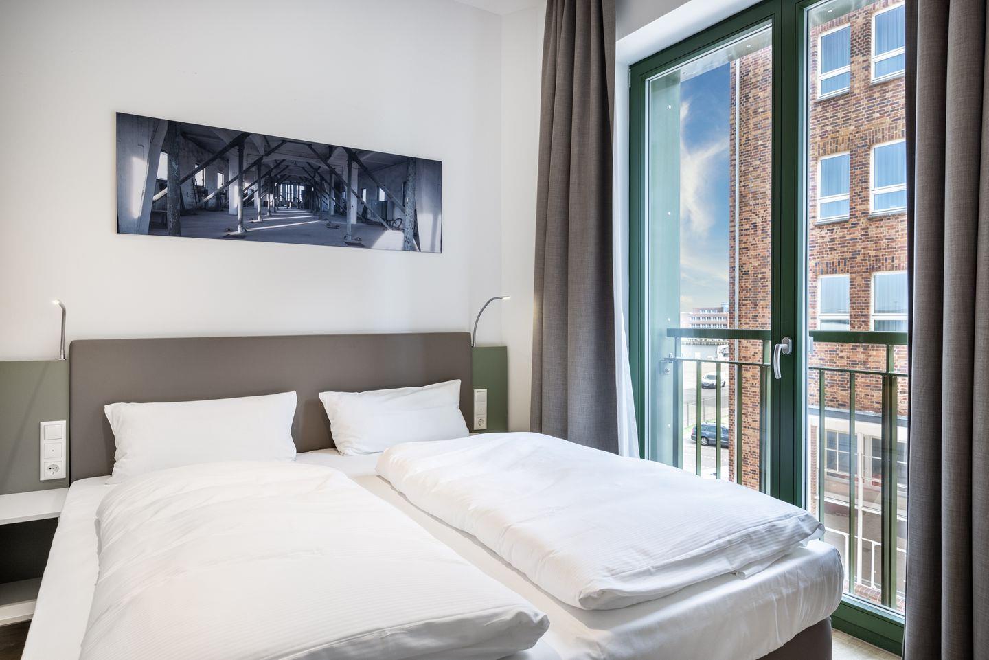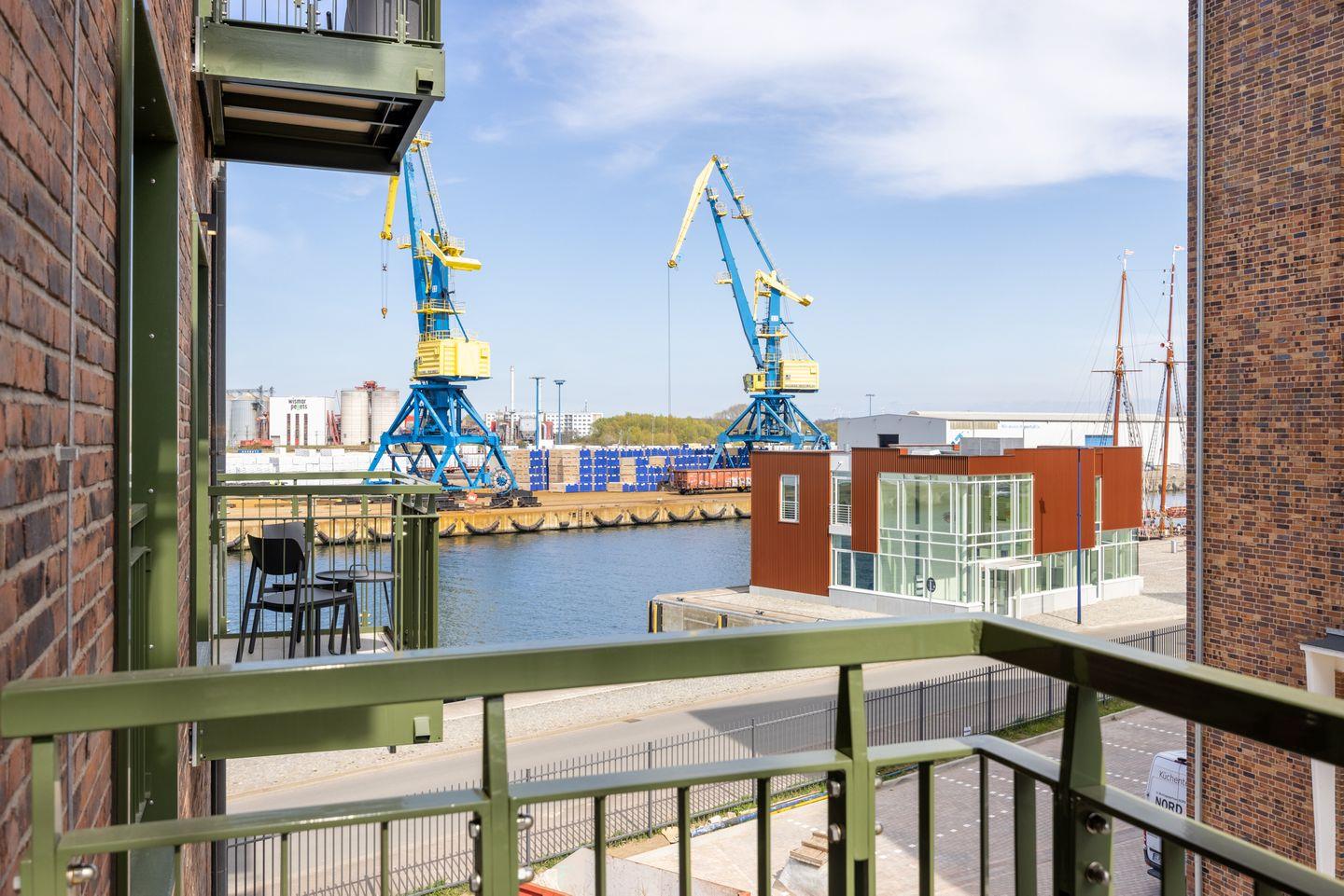 Das 38 m² große barrierearme 2-Zimmer Apartment ist für bis zu 3 Personen geeignet. Das moderne Apartment mit Balkon und seitlichem Hafenblick verfügt über kostenfreies WLAN.