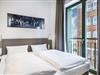 Das helle Apartment verfügt über bodentiefe Fenster, Fußbodenheizung, kostenfreies WLAN und eine voll ausgestattete offene Küche mit Geschirrspüler, Kühlschrank mit Tiefkühlfach, Herd mit 4 Glaskeramikkochfeldern und Backofen, Kaffeemaschine, Toaster, Wasserkocher und Mixstab. Im kombinierten Wohn-Essbereich befinden sich eine Einzelschlafcouch (1,20 x 2,00 m), ein Flatscreen-TV (42 Zoll), eine HiFi-Anlage sowie Gesellschaftsspiele. Genießt schöne Stunden auf dem Balkon mit Blick zum Hafen. Das Schlafzimmer beinhaltet ein komfortables Boxspring-Doppelbett (1,80 x 2,00 m) und einen Flatscreen-TV (42 Zoll). Im geschmackvollen Badezimmer stehen euch eine ebenerdige Regendusche, ein Waschtisch, WC, ein Handtuchwärmer sowie ein Föhn zur Verfügung. Das Apartment verfügt über einen Safe für eine Laptopgröße bis ca. 17 Zoll.
