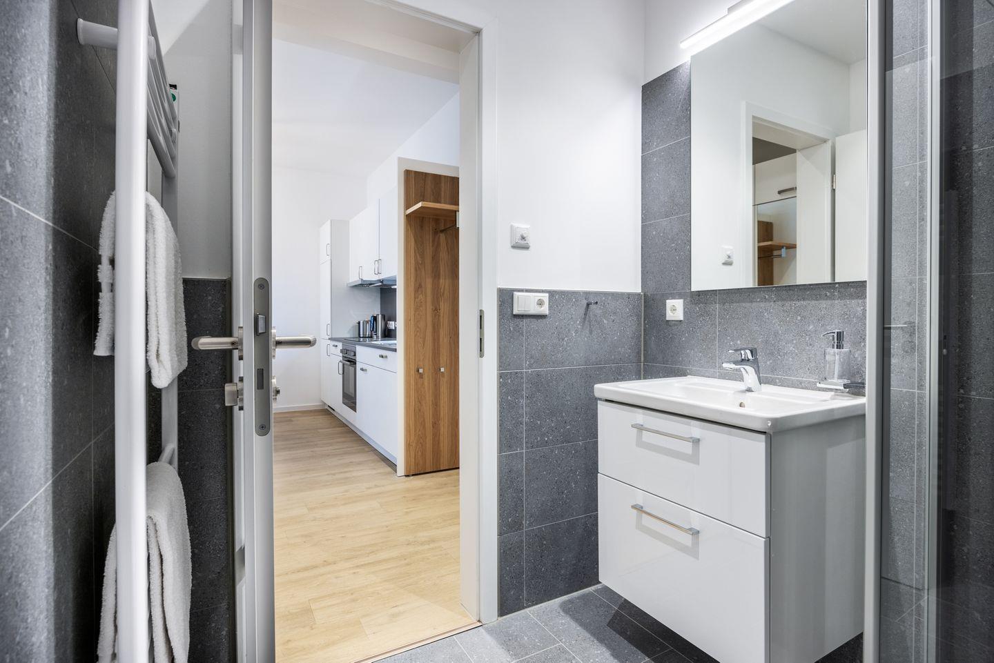 Im Untergeschoss der Apartmentanlage befinden sich Waschmaschine und -trockner sowie abschließbare Abstellmöglichkeit für eure Fahrräder. Ein öffentlicher Parkplatz bzw. ein öffentliches Parkhaus (beides gegen Entgelt) befinden sich in der direkten Umgebung.