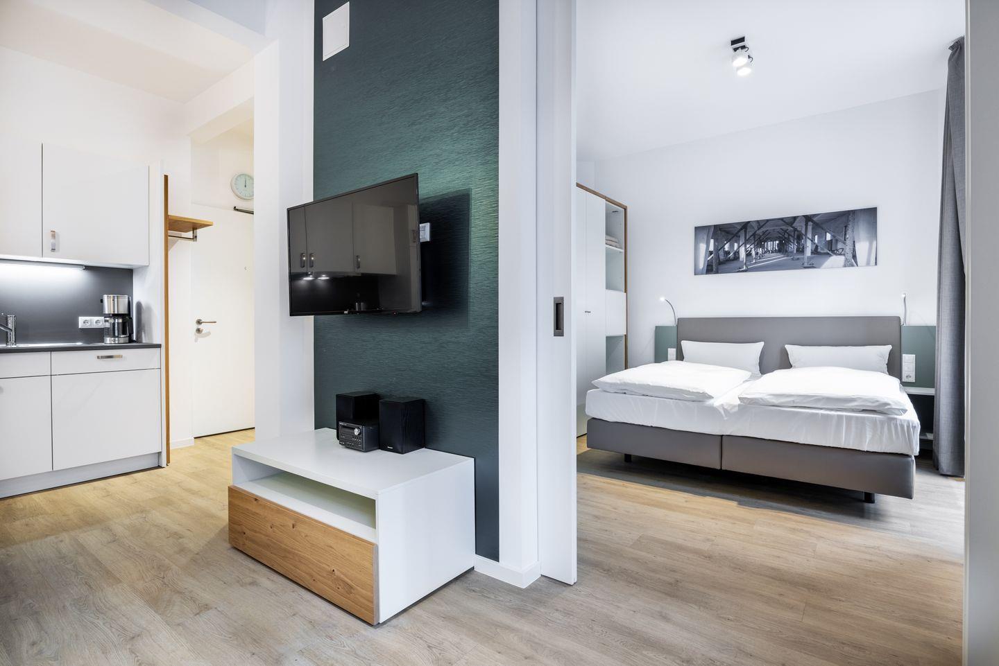 Das 38 m² große barrierearme 2-Zimmer Apartment ist für bis zu 3 Personen geeignet. Das moderne Apartment mit Balkon und seitlichem Hafenblick verfügt über kostenfreies WLAN.