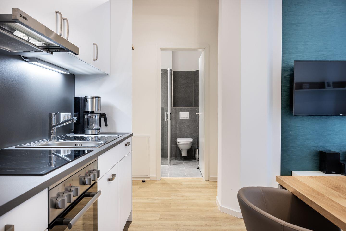 Das helle Apartment verfügt über bodentiefe Fenster, Fußbodenheizung, kostenfreies WLAN und eine voll ausgestattete offene Küche mit Geschirrspüler, Kühlschrank mit Tiefkühlfach, Herd mit 4 Glaskeramikkochfeldern und Backofen, Kaffeemaschine, Toaster, Wasserkocher und Mixstab. Im kombinierten Wohn-Essbereich befinden sich eine Einzelschlafcouch (1,20 x 2,00 m), ein Flatscreen-TV (42 Zoll), eine HiFi-Anlage sowie Gesellschaftsspiele. Genießt schöne Stunden auf dem Balkon mit Blick zum Hafen. Das Schlafzimmer beinhaltet ein komfortables Boxspring-Doppelbett (1,80 x 2,00 m) und einen Flatscreen-TV (42 Zoll). Im geschmackvollen Badezimmer stehen euch eine ebenerdige Regendusche, ein Waschtisch, WC, ein Handtuchwärmer sowie ein Föhn zur Verfügung. Das Apartment verfügt über einen Safe für eine Laptopgröße bis ca. 17 Zoll.