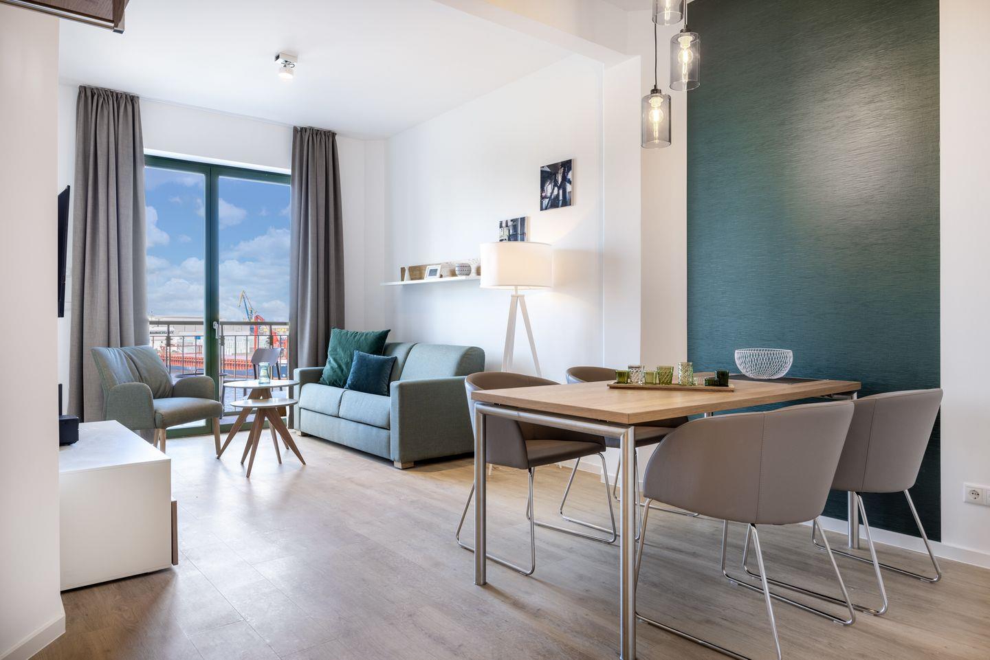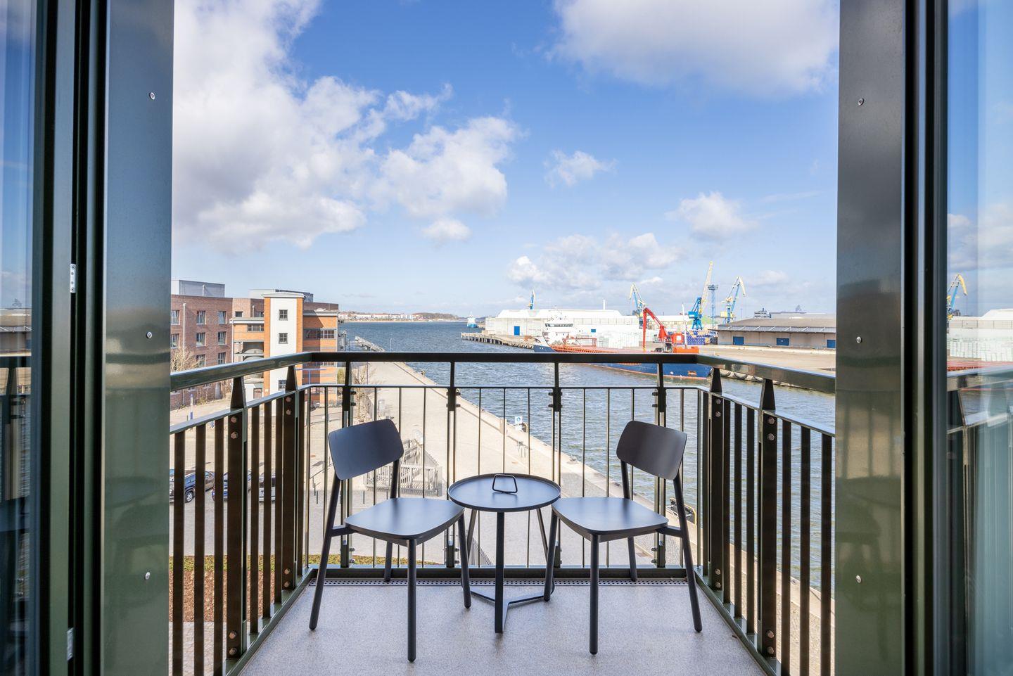 Das 48 m² große barrierearme 2-Zimmer Apartment ist für bis zu 4 Personen geeignet. Das moderne Apartment mit Balkon und direktem Blick auf den Hafen verfügt über kostenfreies WLAN.