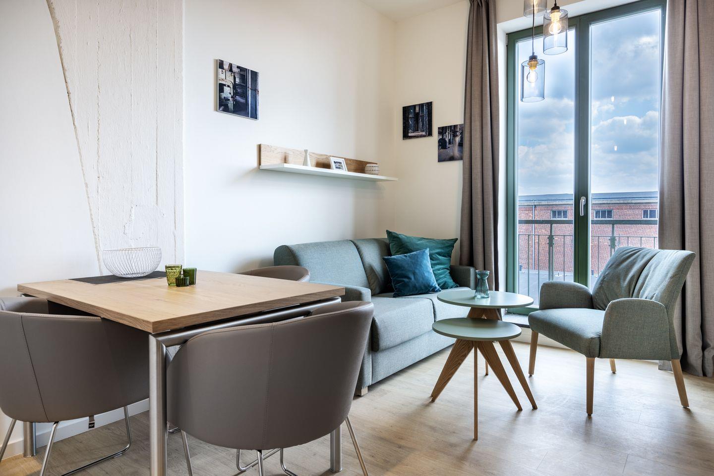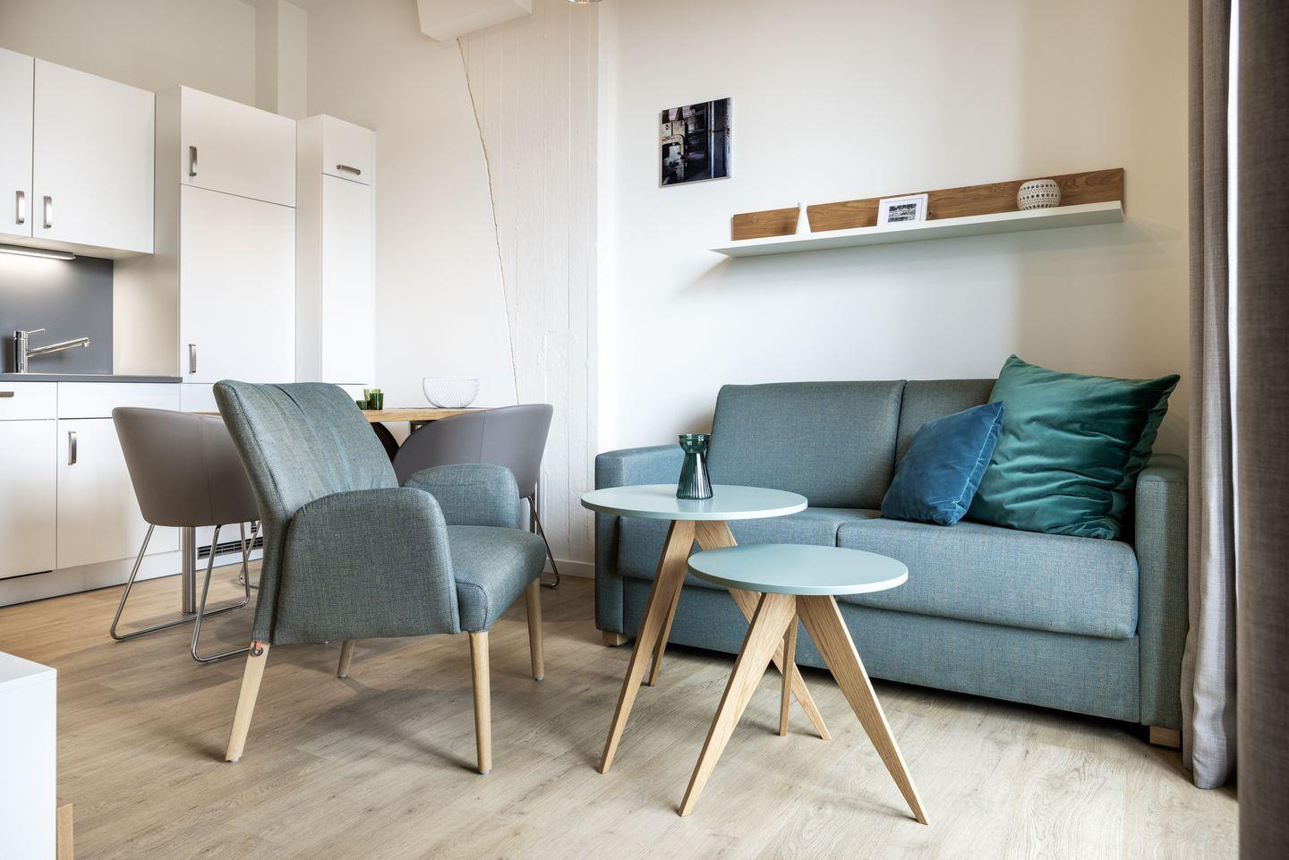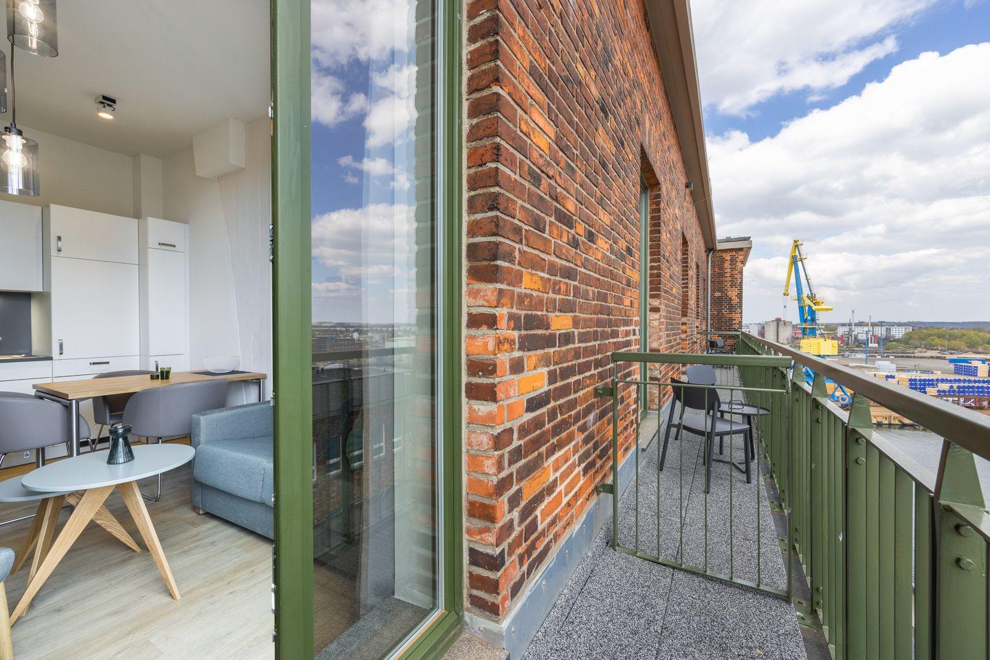 Das 34 m² große barrierearme 2-Zimmer Apartment ist für bis zu 3 Personen geeignet. Das moderne Apartment mit Balkon und seitlichem Hafenblick verfügt über kostenfreies WLAN.