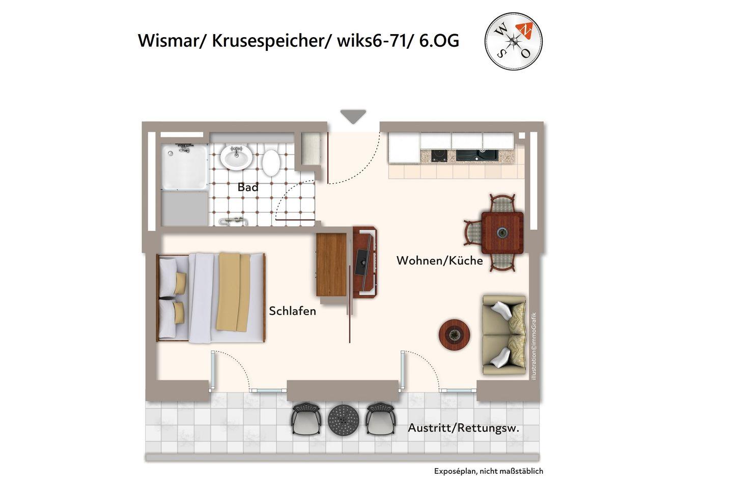 Das Nichtraucher-Apartment in Ost-Lage befindet sich im 6. Obergeschoss des denkmalgeschützten Krusespeichers. Der Alte Hafen von Wismar, einer der attraktivsten Orte der weltoffenen Hansestadt, liegt euch zu Füßen. Von hier aus lässt sich die Stadt und das wunderschöne Umland ideal erkunden. Der Alte Hafen ist übrigens überaus beliebter Veranstaltungsort für Events und Feste und überdies Original-Drehort für SOKO Wismar, die bekannte ZDF-Serie!