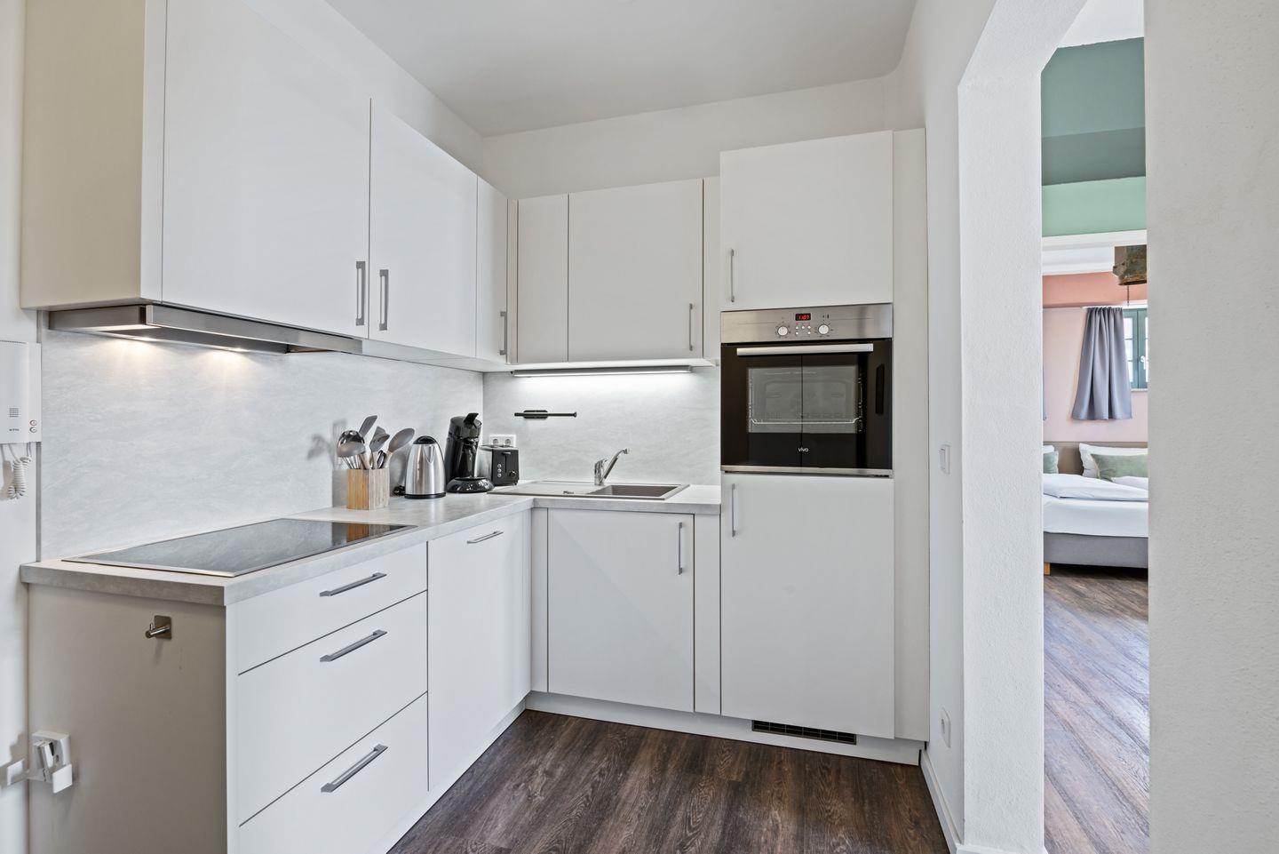 Angeschlossen an den kombinierten Wohn-Essbereich befindet sich die voll ausgestattete offene Küche mit Geschirrspüler, Kühlschrank mit Tiefkühlfach, ein 4-Felder Ceranherd, Kaffeepadmaschine (Senseo), Toaster, Wasserkocher und Backofen. Der Wohnbereich beinhaltet für euch eine Schlafcouch, einen großen SMART-TV (49 Zoll), eine hochwertige Bluetooth-Box von Bose mit Radio sowie Bücher. Das geschmackvolle Badezimmer verfügt über eine ebenerdige Dusche, Waschbecken, WC, Handtuchwärmer, Kosmetikspiegel und Föhn. Das separate Schlafzimmer bietet ein komfortables Boxspring-Doppelbett (1,88 x 2,00 m), Kleiderschrank und einen weiteren großen SMART-TV (49 Zoll).