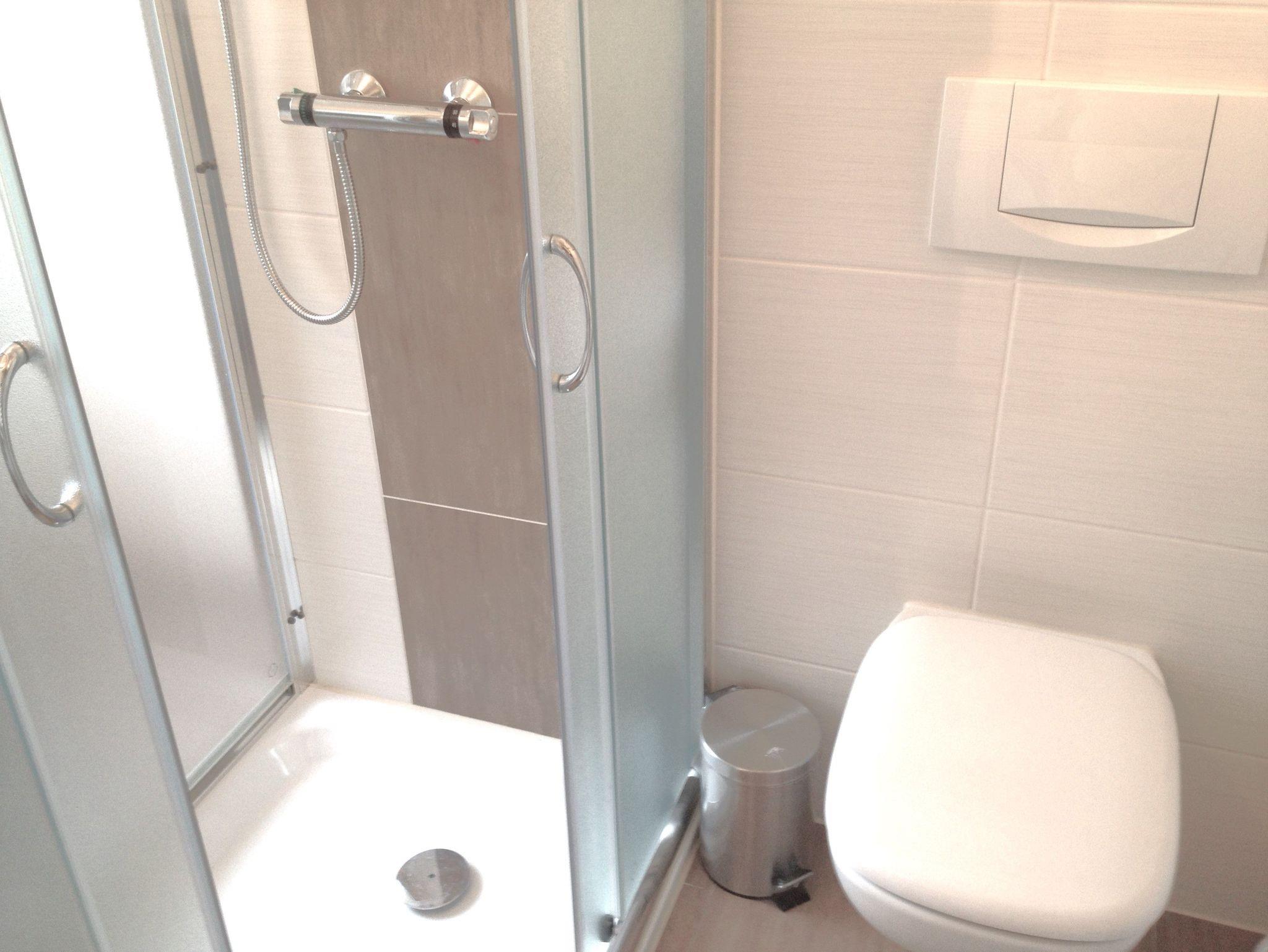 Im Schlafzimmer stehen 2 große Betten (jeweils mit Rollbett darunter), ein geräumige Schrank, ein Tresor und ein kleiner Schreibtisch. Ein modernes Bad mit Dusche/WC sowie die große möblierte Terrasse stehen Ihnen ebenso zur Verfügung.