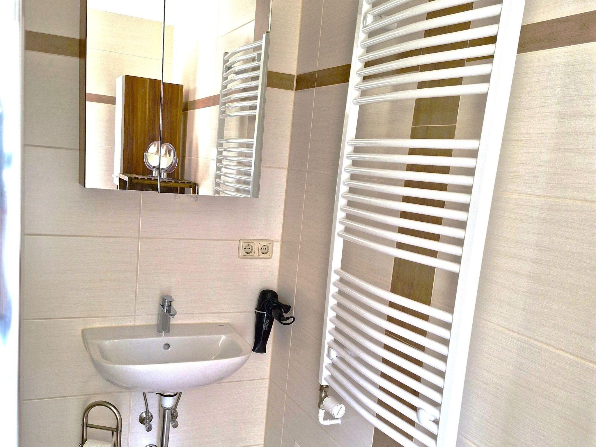 mit Waschmaschine, die gegen eine kleine Gebühr genutzt werden kann.