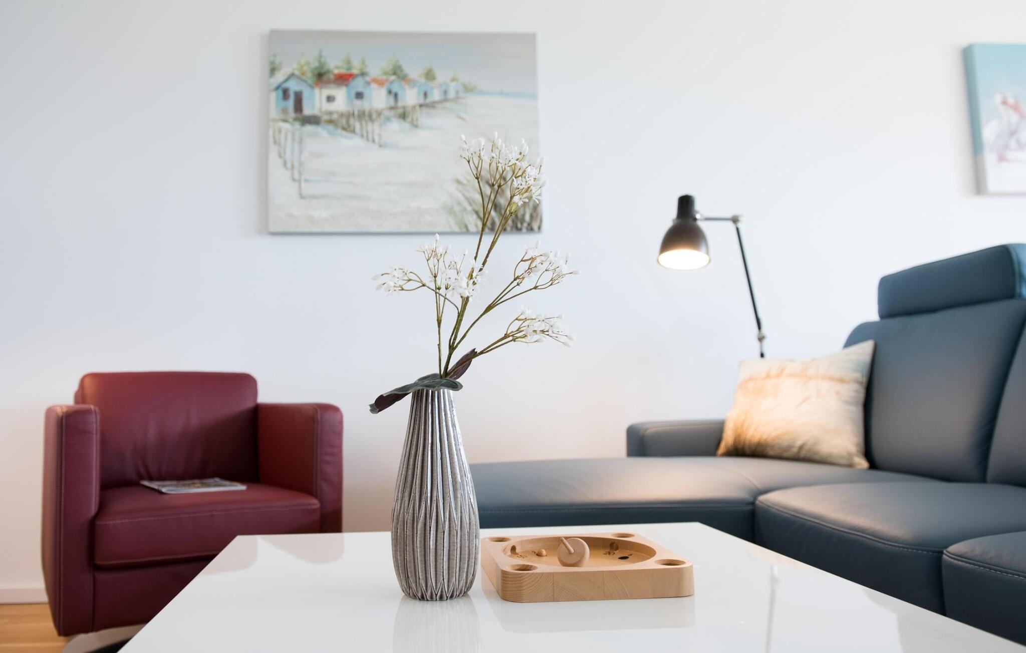 Det bliver romantisk foran pejsen i den hyggelige sofa. WiFi og Smart TV med Telekom Home Entertainment-program sørger også for indendørs underholdning.